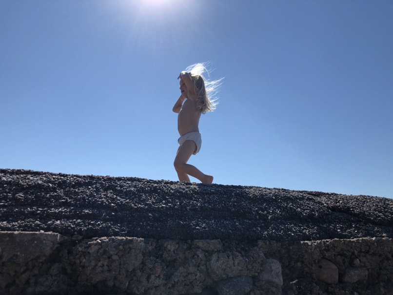 Sen åkte vi en liten bit till och hittade en badplats där vi badade fötterna, lekte och fiskade krabbor.