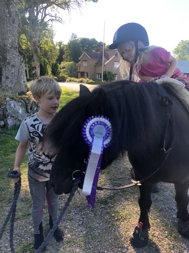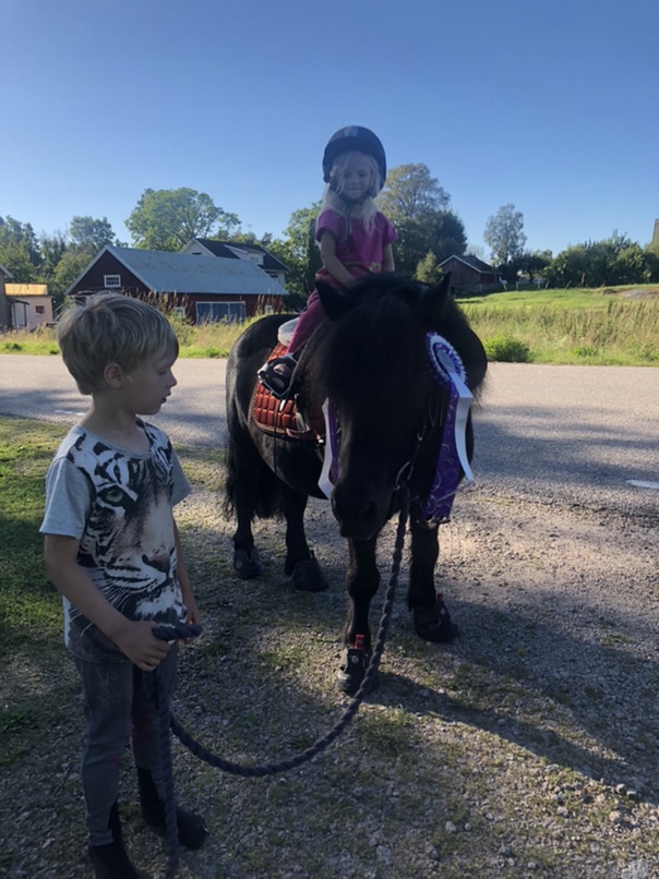 Häromdagen när Axel var på jobb tog jag och barnen en ponnypromenad. Vi stannade till vid brevlådan och där i låg ju barnens rosetter från sommarens tävling! Nora loggade tio valfria distanser, och Loke loggade sex mil ponnyvagnen på 12 veckor. Inga problem!