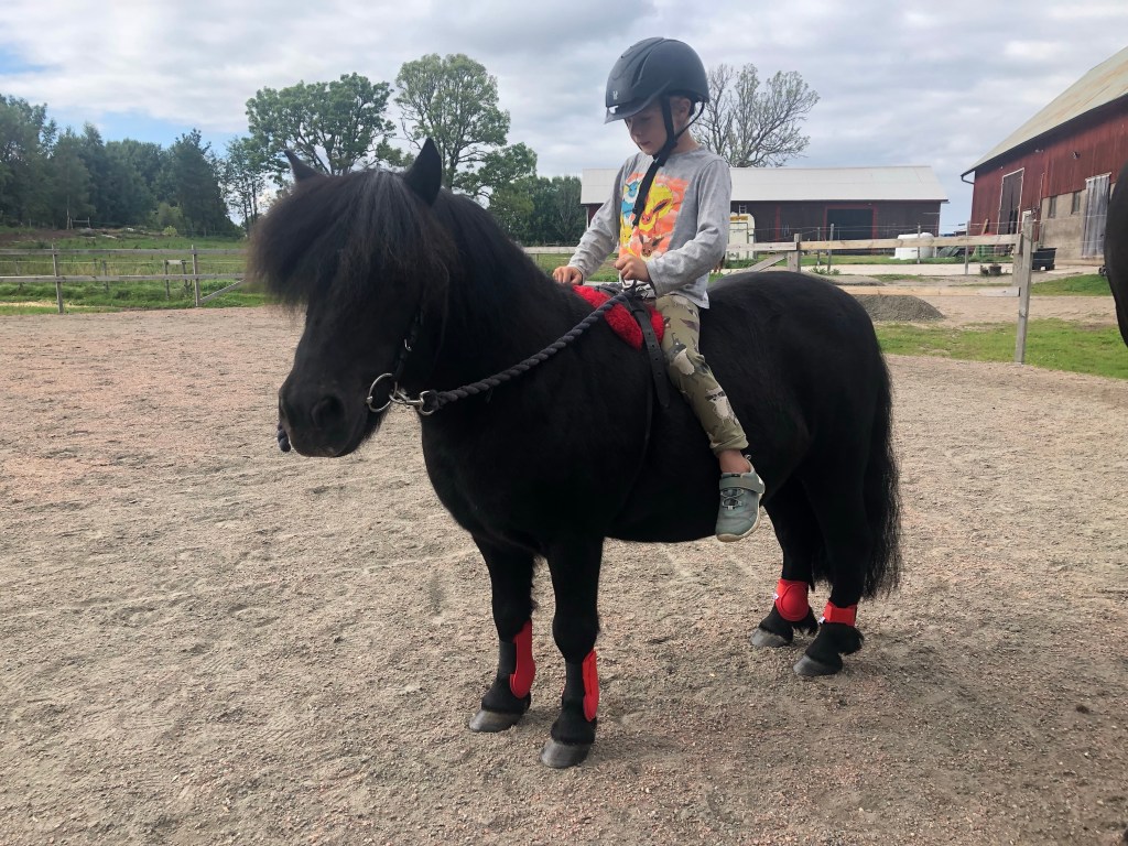 Jag var lite osäker på hur långt han skulle orka rida men vi red ner till sjön och plaskade lite i vattnet och sen hem igen så det blev ändå fyra kilometer. Assim skrittade på riktigt bra så det tog inte hela dagen heller! Loke vill inte trava än, men hoppas det släpper framöver.