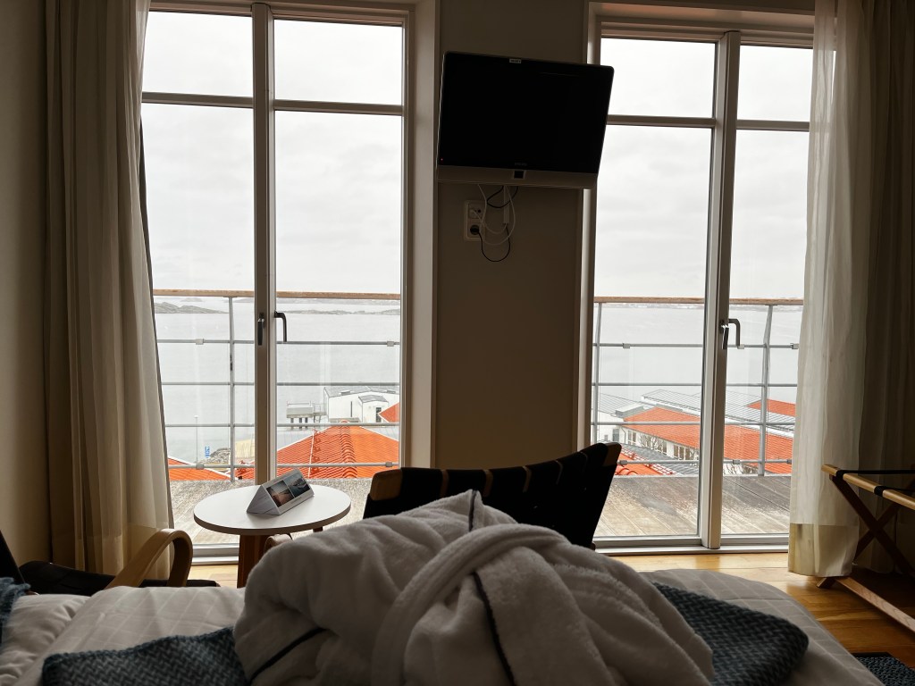 Mitt boende var fem trappor upp med utsikt mot Lysekil på andra sidan vattnet så den kunde jag inte klaga på, fast jag tillbringade nog inte mer än en vaken timme på rummet så det blev inte så mycket njutit av den.