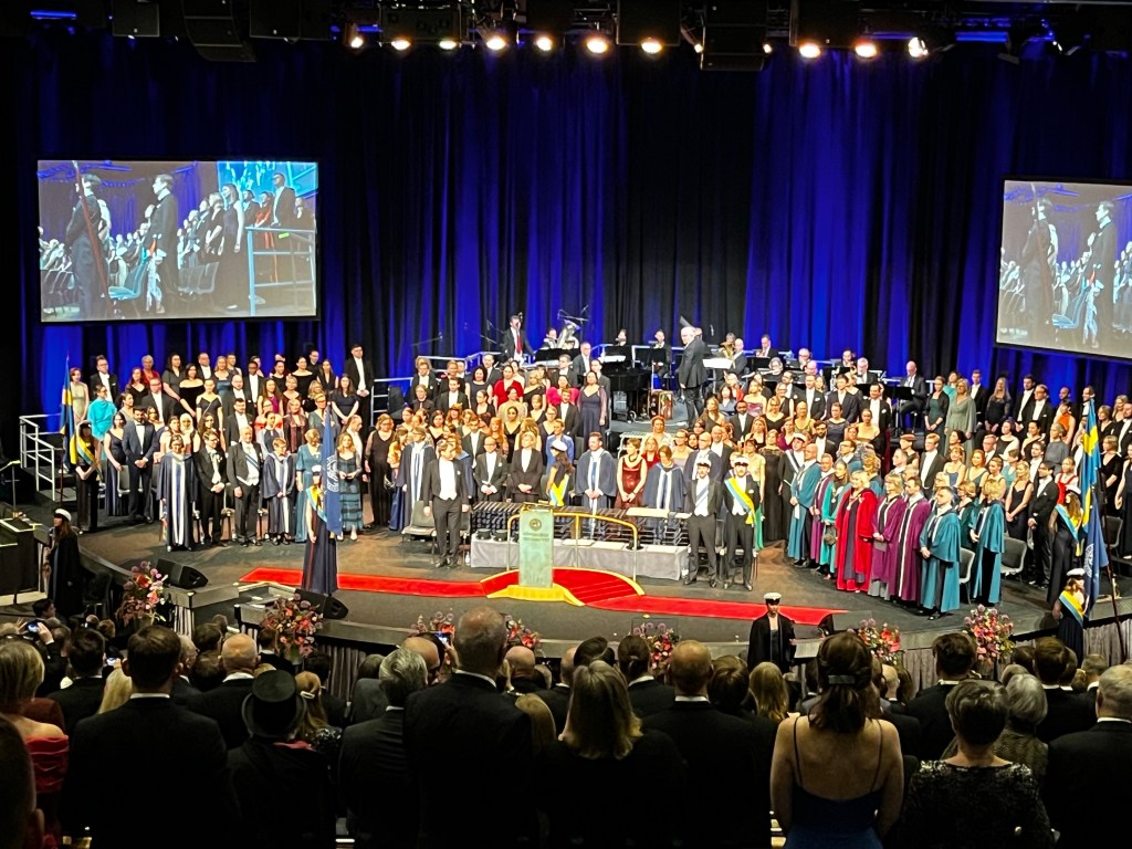 Jag hittade in i kongresshallen och klockan 15.00 tågade fanbärare, doktorer, jubilarer, hedersdoktorer och massa andra finklädda människor.