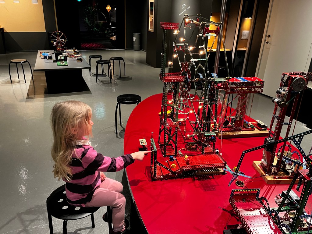 Ett rum var fullt av olika byggnationer som drevs av batterier och det fanns kranar mm som kunde lyfta kulor. Och knappar att trycka på!
