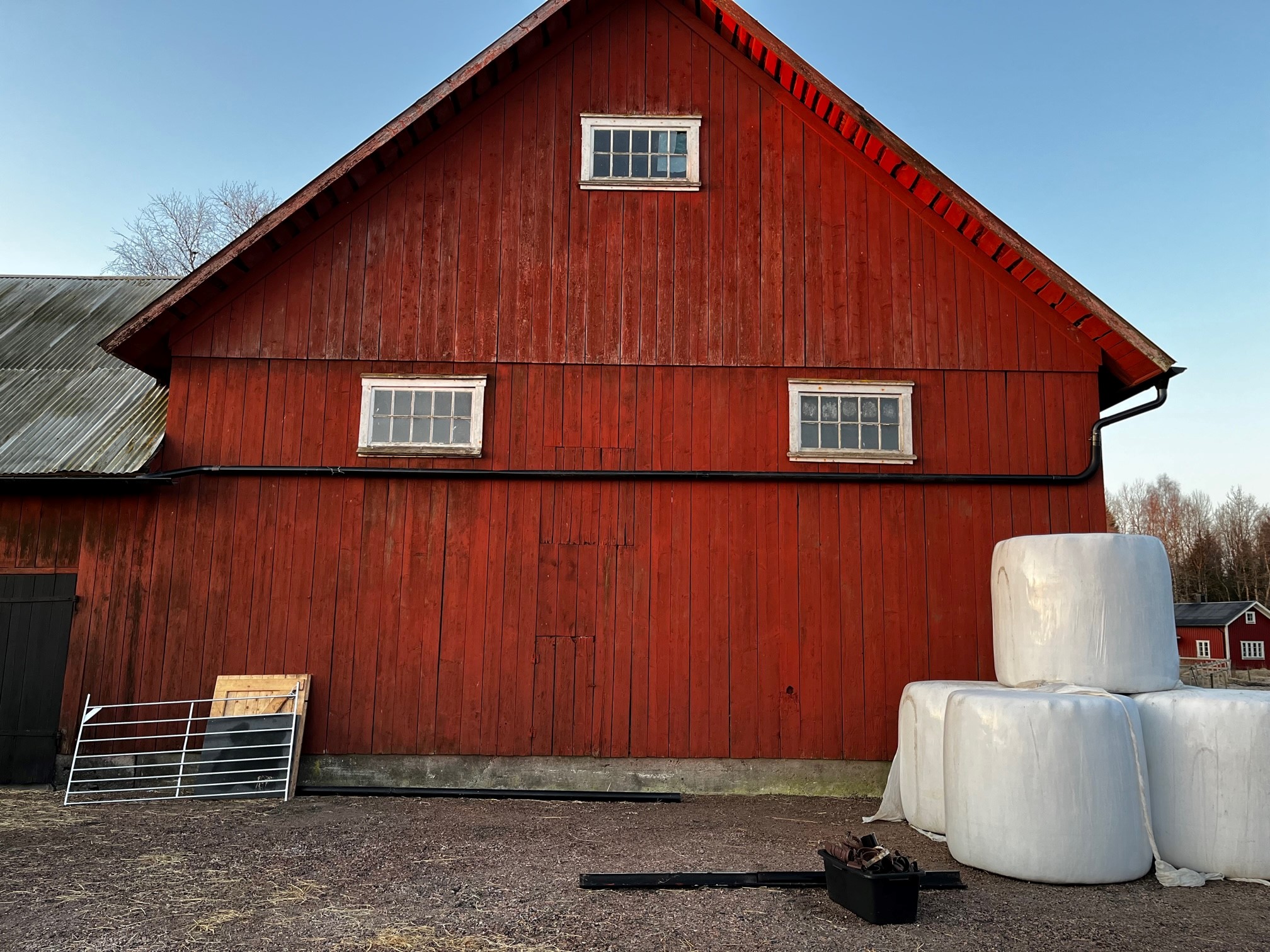 I helgen som var, lade vi lite tid på ytterligare hängrännefix på våra byggnader. Ena stupröret på stora ladan har tidigare bara gått rakt ner och ut i en utkastare på gräset vid gårdsplanen/bakom höbalarna.
