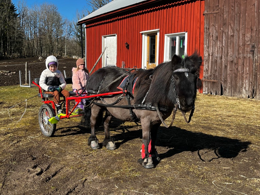 En ledig fredag, och sol och trevligt väder på det! Jag och barnen inledde med en ponnyvagnsrunda medan Axel satte fyr på påskbrasan.