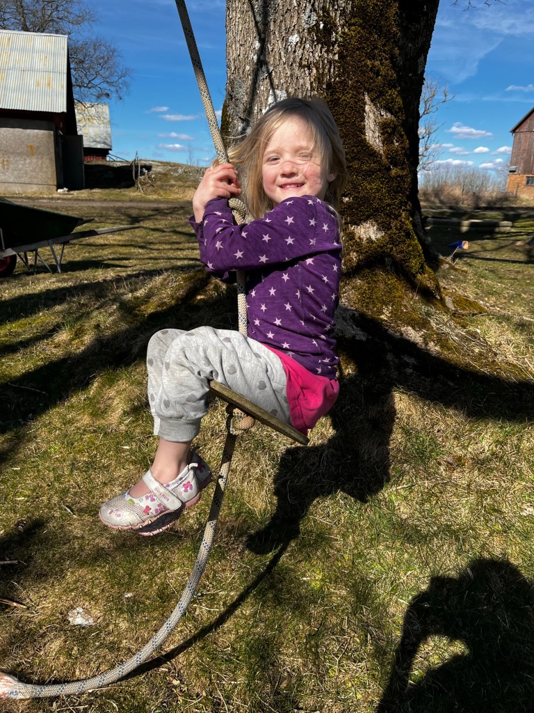 Tänk att man kan bli så lycklig av väder. Redan vid frukost sken solen starkt och plusgraderna plockade på. Vid tio kom Noras kompis Orla och hennes mamma på besök vilket var väldigt roligt. Vi tittade på alla djuren, gungade, klättrade i träd och hade fruktstund med inslag av chokladägg.