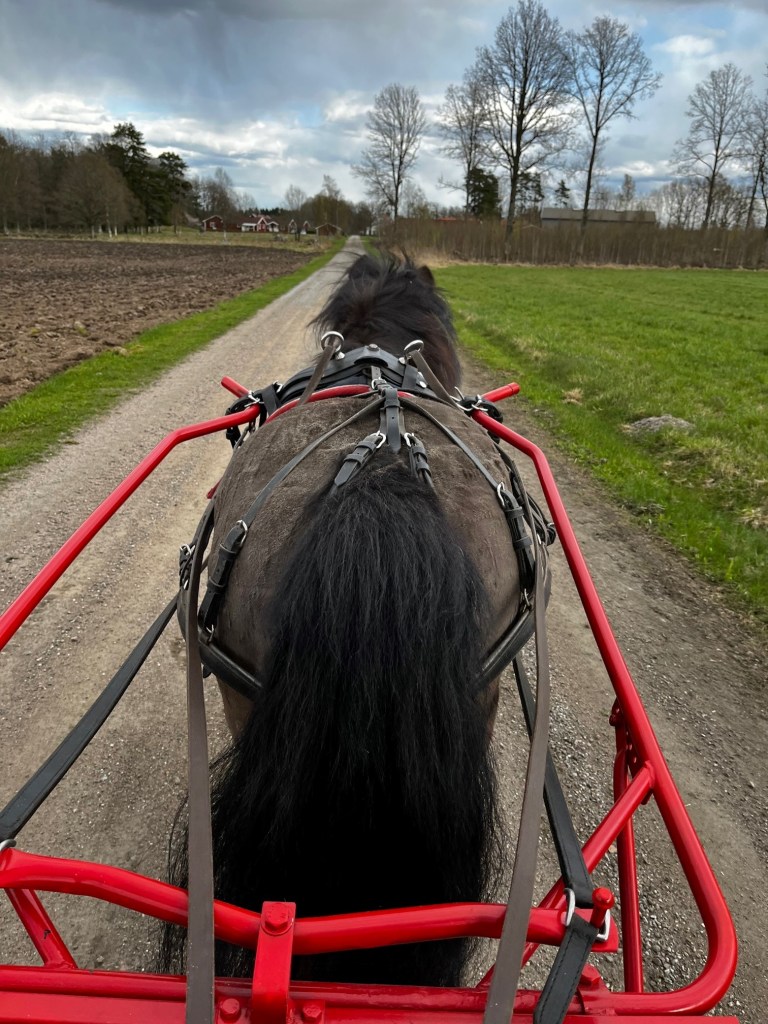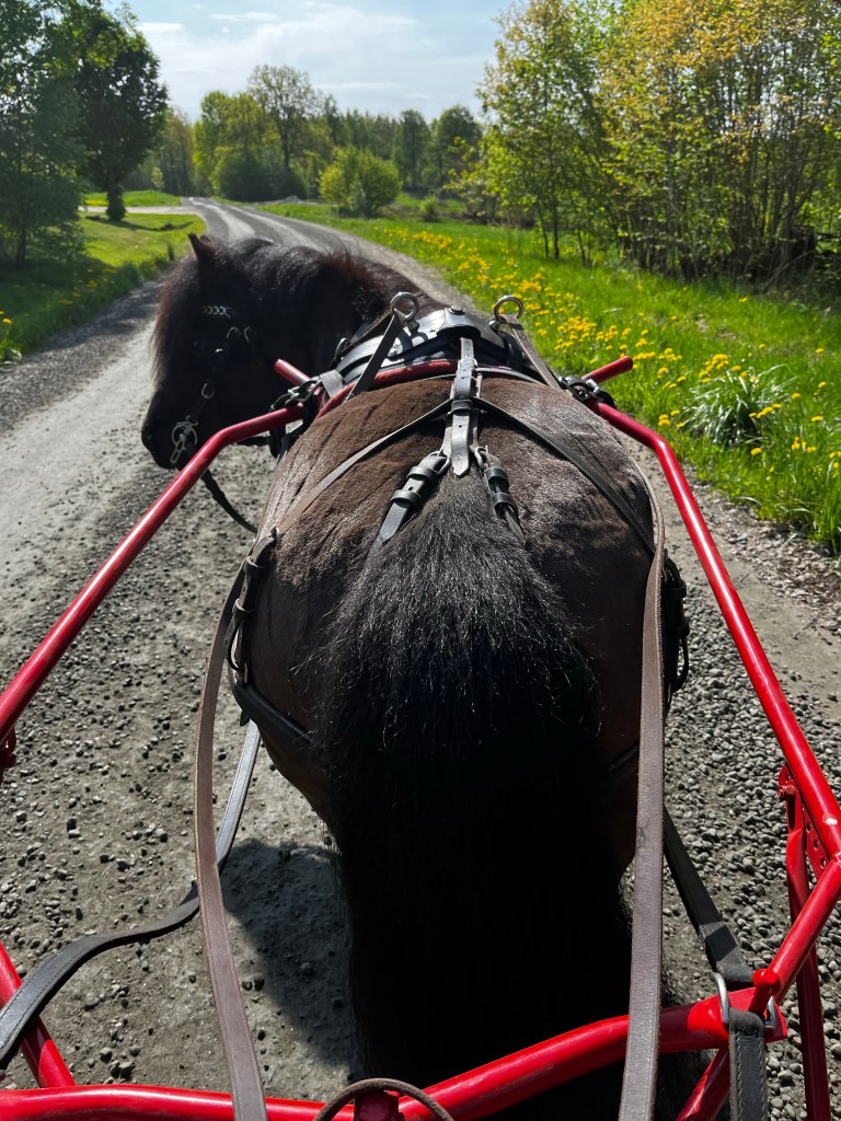Därefter fick ponnyn sele och vagn på och vi körde en runda på ca 4 kilometer. Med den här lite lättare vagnen orkar Assim trava på riktigt bra så det blir inte mycket skritt under rundan när den är såpass kort. Härligt!