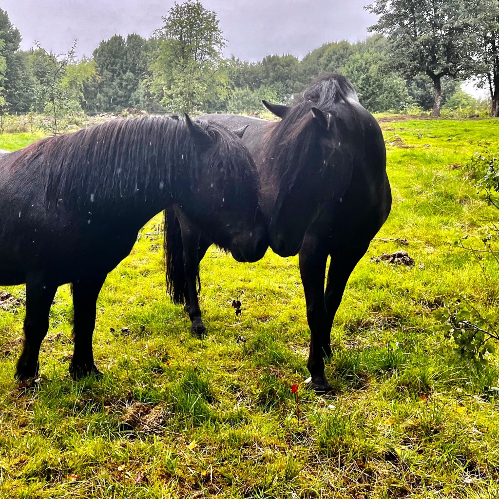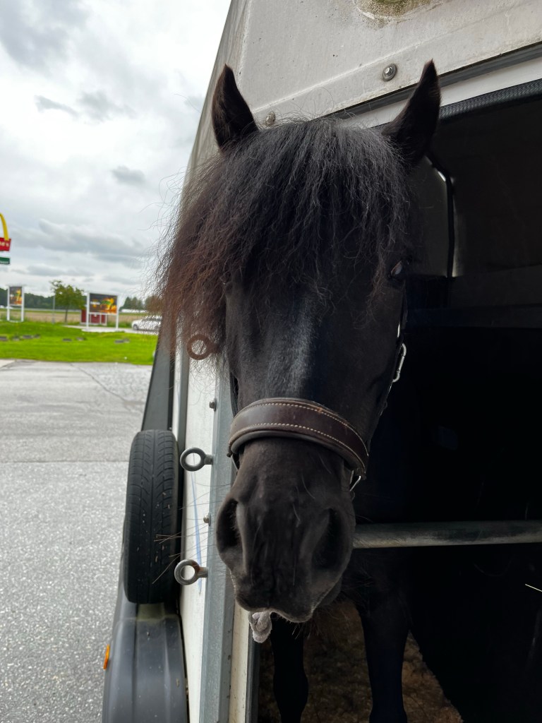 Dominos mamma heter Dollar Girl, och här fick vi en liten överraskning för det visade sig att Dollar Girl är welsh/shettis, och inte enbart welsh som den tidigare ägaren trodde. Jag hittar tyvärr ingen bild på Dollar Girl, men hon ska vara fux med vita hår i pannan, och hennes mamma (Dominos mormor), Gläntans Gina är en äkta svart shetlandsponny så med stor sannolikhet är det därifrån Dominos svarta färg kommer ifrån.