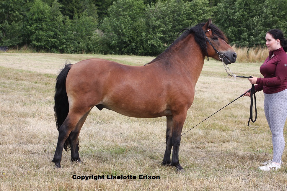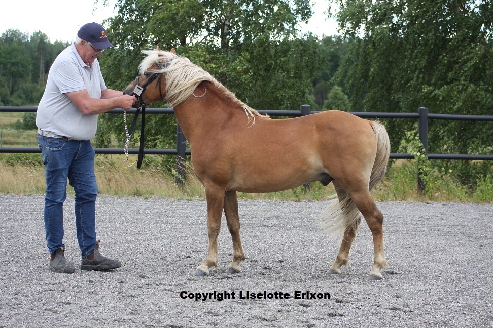 Och avelsvärdering 2 som åttaåring: ”Maskulin hingst av utmärkt rastyp. Vackert huvud, bra resning, bra bål och överlinje. Harmoniskt benad, rättställd. Spänd skritt. Lätt, naturlig trav.”