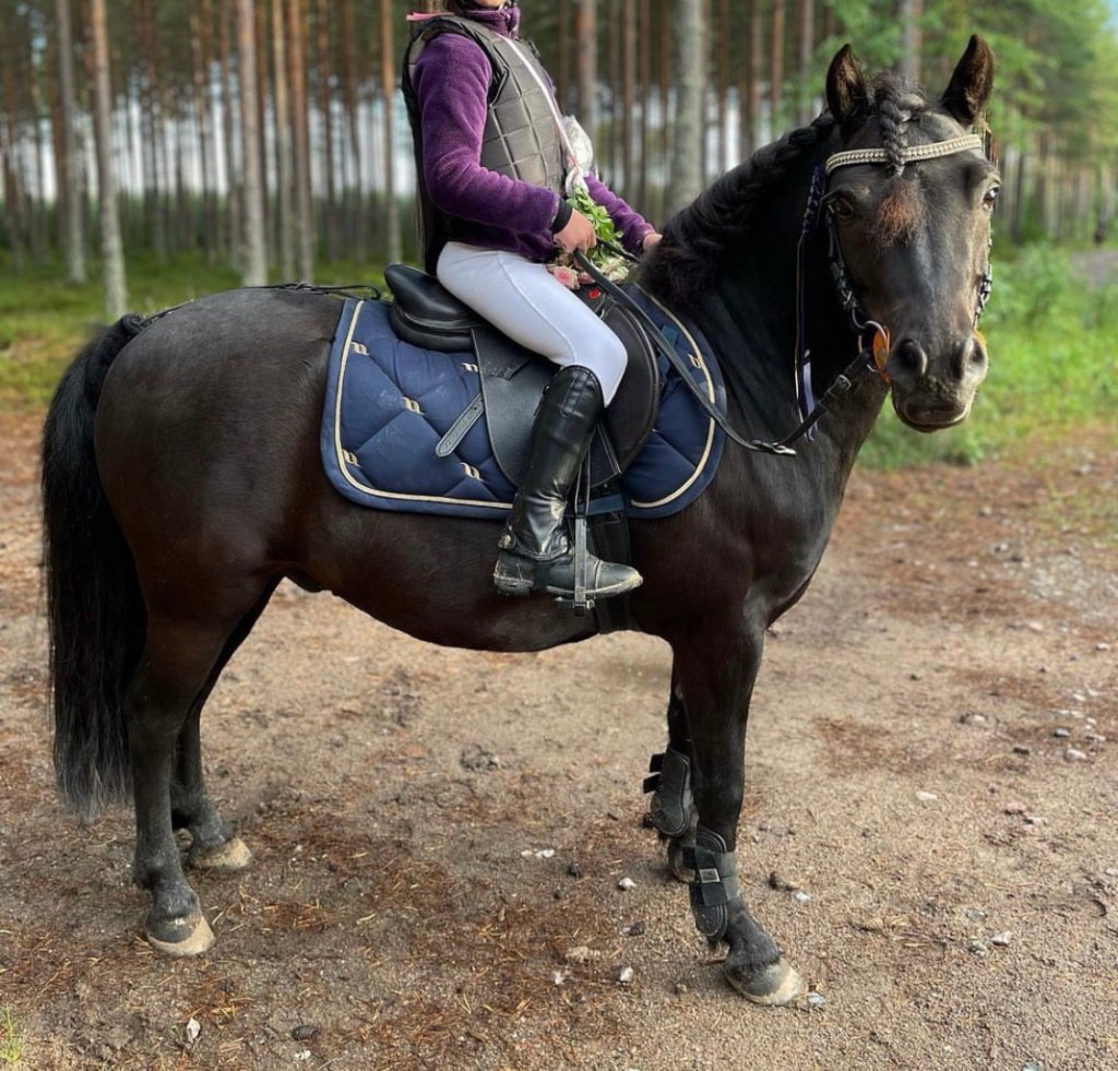 När jag läste annonsen på Domino stod det russ/welsh som ras, jag reflekterade inte så mycket över det mer än att jag undrade lite varifrån hans svarta färg kom ifrån. Russ är inte så ofta svarta på det sättet, och svarta welshar kommer oftast med vita tecken på huvud och ben, och han har inget av detta. Den nuvarande ägaren visste inte så mycket om hans bakgrund/stam, men när jag och Susanne satte oss i bilen på vägen hem gick google varm! I passet var stamtavlan full av namn och vi började på pappans sida; gotlandsrusset Piccaso 727.