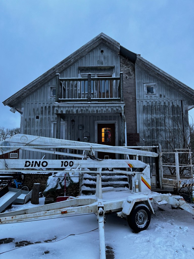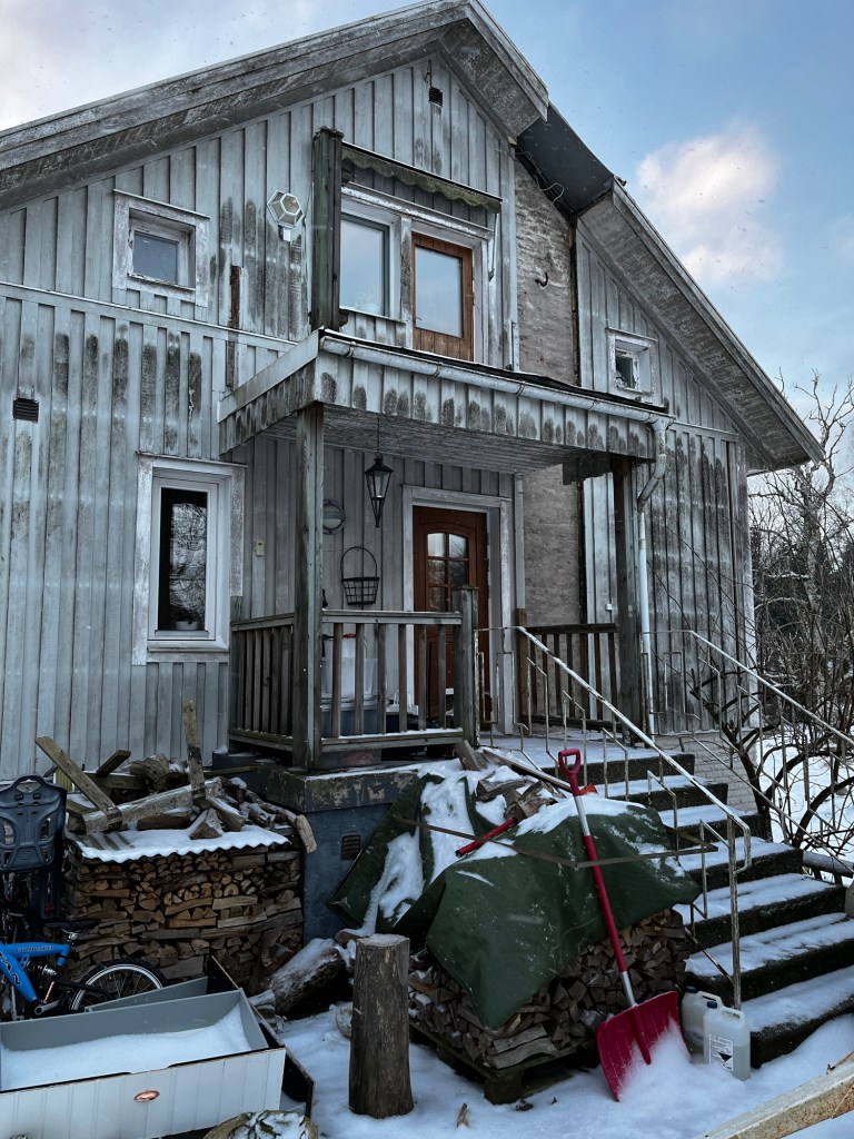 Vi har kört all in på ved i helgen och började med att ta hand om ett träd som vält i hagen nedanför huset. Det sågades och höggs i lagom bitar och staplades bakom lekstugan i brist på bättre ställe. Just nu har vi ju veden utanför huset precis men med det stundande panelbyte på huset är den ju lite i vägen så vi kan ju åtminstone stapla den nya veden där den inte är i vägen. Sen är väl inte detta nåt långsiktigt ställe heller, men vad gör man!
