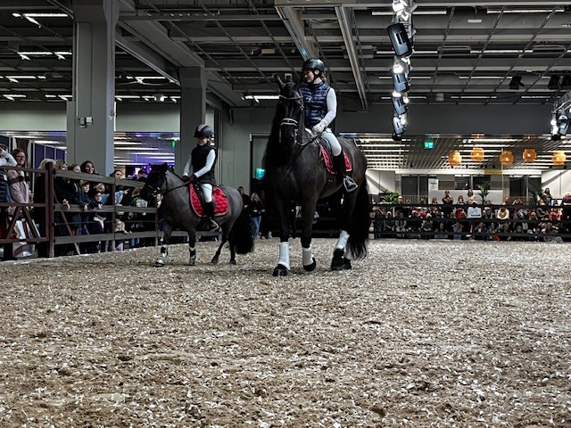 Något som också verkade ge Nora lite inspiration var två olika uppvisningar, en där två shetlandsponnyer gjorde en slags bana med lite olika ”hinder” och en uppvisning med den ena shetlandsponnyn och en av frieserhästarna från tidigare under dagen, som red runt tillsammans.