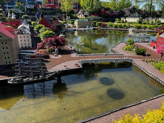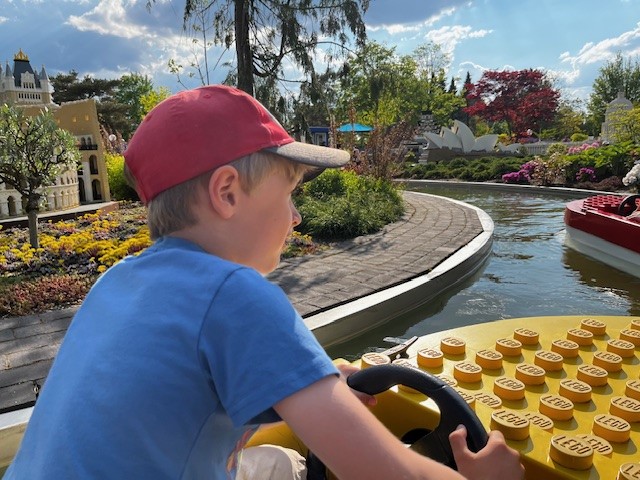 Ja vad gjorde vi mer? En tur med safaribilen genom safariparken med legodjur i verklig storlek var fräck, och jag och Loke tog en tur i båten förbi värdsliga byggnader. I lego!