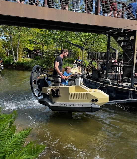 Sen tog vi oss in i äventyrslandet och Loke och Axel åkte en slags vattenskoter, det tyckte Loke var kul! Innan lunch tog vi också en tur i tekopparna alla fyra, och det var Noras favorit för dagen.