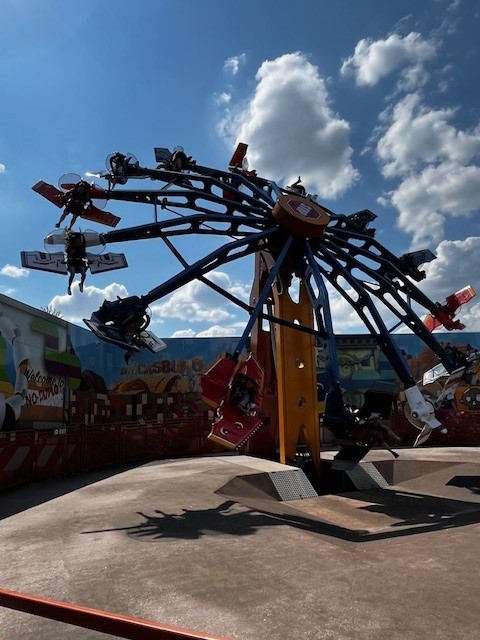 Efter lunch gick vi runt och kikade lite och hittade en flygplansliknande karusell som vi skickade upp Axel i. Sitsen och vingarna var roterbara så man själv kunde liksom snurra runt och göra lite som man ville, såg rätt fräckt ut!