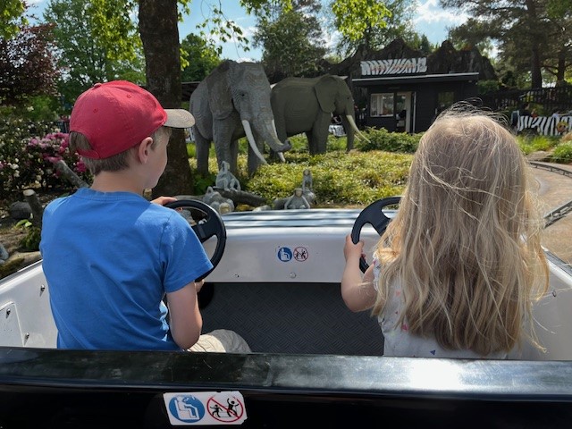 Här kunde man ju gå runt hur länge som helst, och vi kom faktiskt hit igen i slutet av dagen, men efter en stund gick vi vidare för att upptäcka parken och vi åkte ett varv på en enspårsbana för att få en liten överblick över parken. Efter detta gick vi lite längre in och stötte på morfar som hängde på oss en stund. Loke och Axel byggde en båt som åkte nerför en fors och Nora åkte häst-karusell. Efter detta åkte vi Lego Canoe, en enklare variant av Flumride, och det var skoj och vi såg många fina lego-djur i skogen runt banan. En nedförsbacke där det skvätte lite vatten var det också, Loke gillade det, Nora tyckte det var lite läskigt!