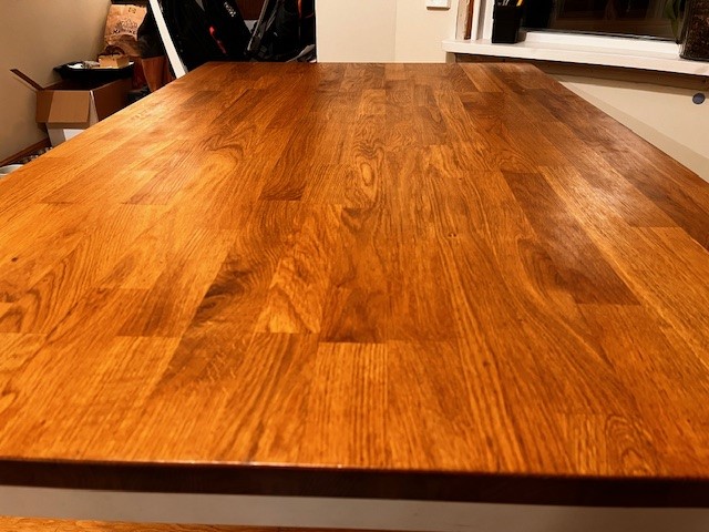 När slipningen var klar (och barnen somnat trots oväsendet) var det dags för oljan.
