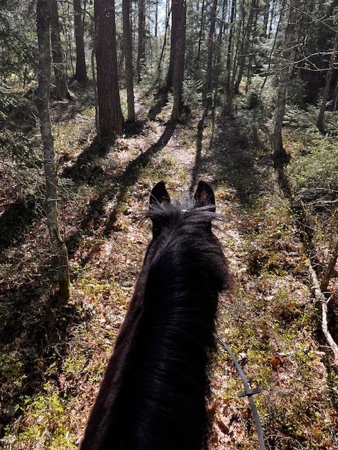 I fredags när jag kom hem hade Axel redan hämtat barnen och åkt för att handla så jag pep direkt ut till stallet och red en runda på Kaprifol. Hon har nu skrittat i en månad ungefär och vi fick därmed premiärtrava lite lätt! Det blir ju genast lite roligare då, och det går att rida lite mer, så det var härligt. Vädret var ju inte så tokigt heller!