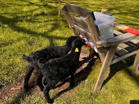 Vi har också två lamm som stödmatas lite, den ena är en trilling, och den andra en tvilling till mamman som bara har ett halvt juver. Men de mår fint och även det lammet som var lite svagt att komma igång att äta har kommit igång fint nu.