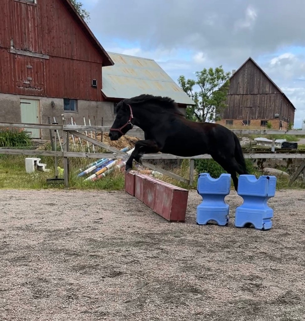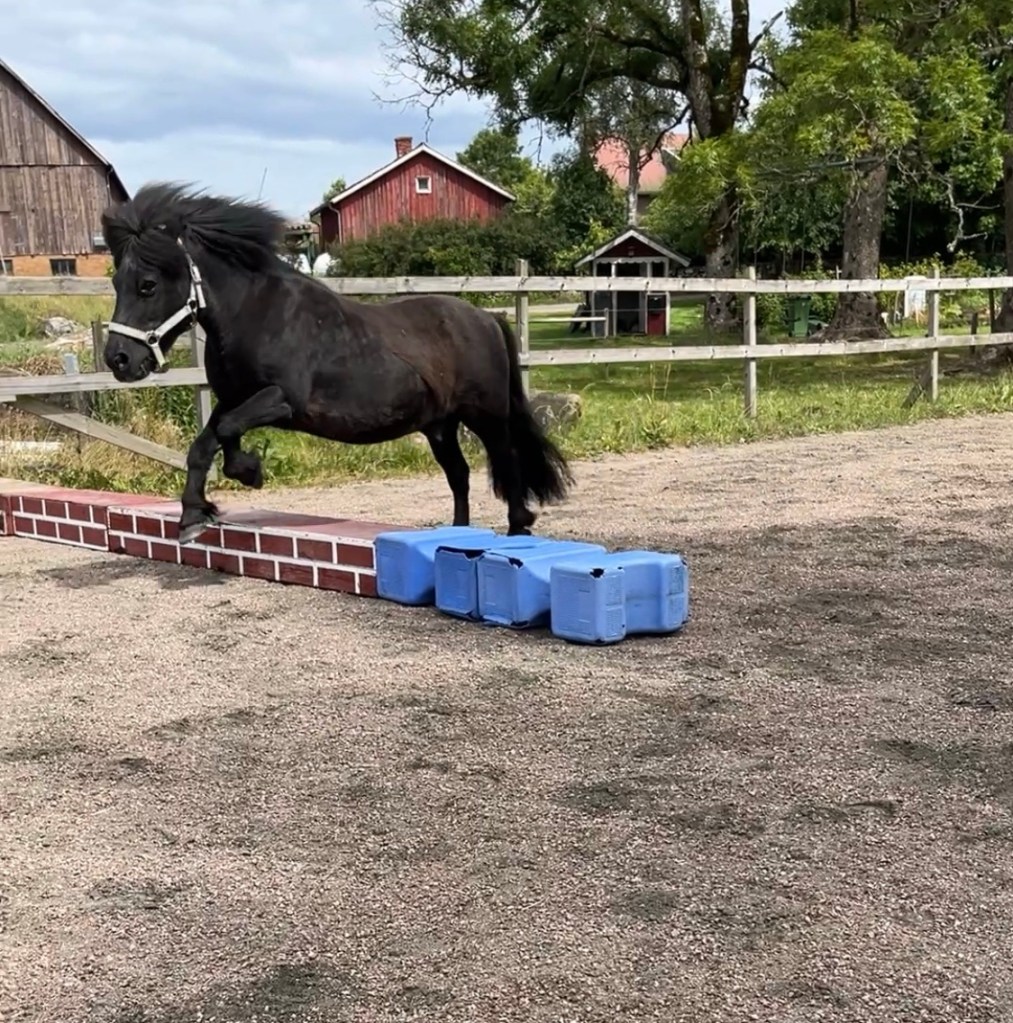 När alla var klara tog jag och Nora ut ponnyerna på ridbanan för lite lösgalopp. Vi plockade fram lite murdelar så fick de hoppa lite också.