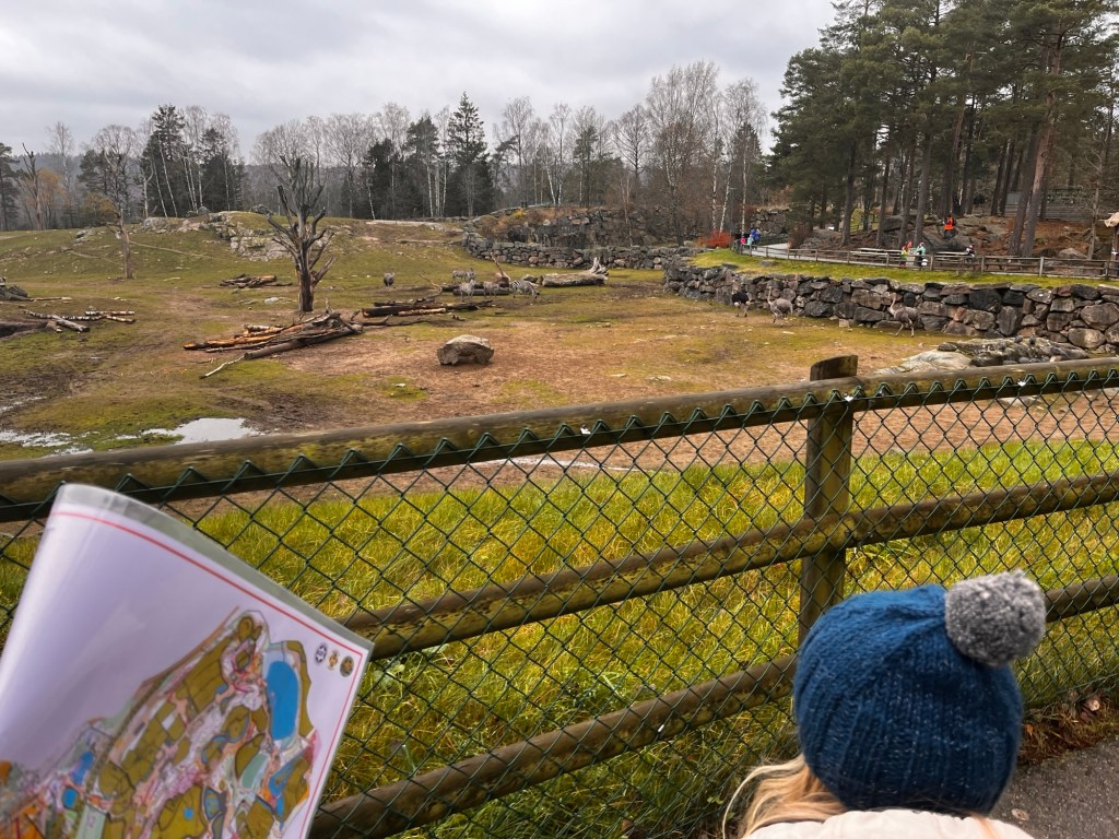 Axel gick med Loke och jag gick med Nora och vi startade ungefär samtidigt, precis vid ingången till djurparken som var stängd för övriga besökare. Vår bana gick över femton kontroller och vi började uppför trapporna och sen runt förbi savannen och ner genom bondgårdsområdet. Nora var jätteduktig och orkade springa nästan hela tiden och vi läste kartan tillsammans och hittade rätt kontroller.