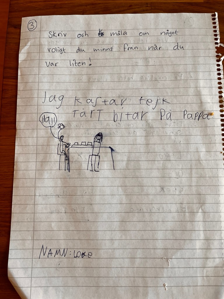 För att roa honom lite medan jag hade ett mötes-maraton på förmiddagen gjorde jag lite ”läxa” åt honom, här är slut-uppgiften!