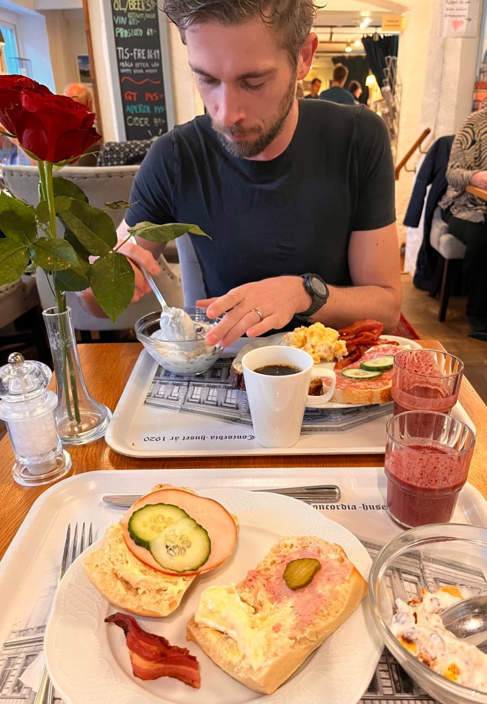 Det blev en god natts sömn och vi vaknade strax efter åtta, och gick ner till frukosten ca 8.40. Även den var god! Efter frukosten gick vi tillbaka till vårt rum och Axel jobbade nån dryg timme och jag slappade med en bok, och så vid 10.20 var det lagom för oss att checka ut och hoppa in i bilen.