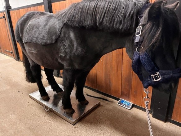 I dagarna har också ponnyerna blivit invägda, och det var ju ingen trevlig syn! Helt klart förväntat med tanke på hur de ser ut, och att de gick upp i vikt bara av att det blev höst. Trots att de gick kvar i samma hage, och sen blev insläppta i vinterhagen där det var lite för mycket gräs. Trots att det gått får där i flera veckor. Den 27:e september gick de in i vinterhagen och Domino väger nu nästan 300kr, jämfört med 250kg innan sommaren. Så vi har lite att jobba på!! Värt att lägga till att de bara precis nu sedan ett par dagar tillbaka har fått börja få liiite hö två gånger per dag, så den som säger att höstbete inte innehåller någon näring…