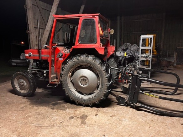 Under eftermiddagen tog vi hand om lite djur och när Axel kom hem åkte vi bort till Östergården där vår domkraft finns, och bytte däck på hästsläpet. Det hade ju kunnat gå lätt och smidigt men det gjorde det då inte! Vi gjorde så proppen gick i Axels föräldrars lada, kompressorn var vääldigt segstartad och mutterknackaren fick jobba väldigt hårt för att få loss muttrarna från däcken som satt på släpet. När vi till sist kommit till sista däcket fastnade muttrarna i mutterknackaren och det krävdes en hel del arbete för att få loss dem. Men till sist satt sista däcket på plats och vi kunde åka hem igen!
