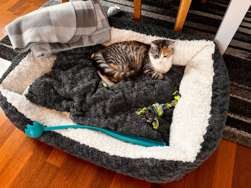 Vi har också fortsatt ”valpsäkra” och fått upp sladdarna bakom tvn riktigt snyggt.