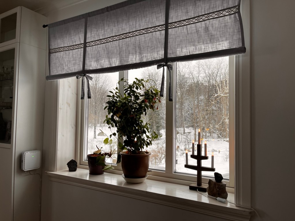 Fler lister är på väg upp också, vi närmar oss slutet… Ett fönster i vardagsrummet är nu klart! Dessa underlister får limmas och tvingas fast. Därmed bara ett i taget…