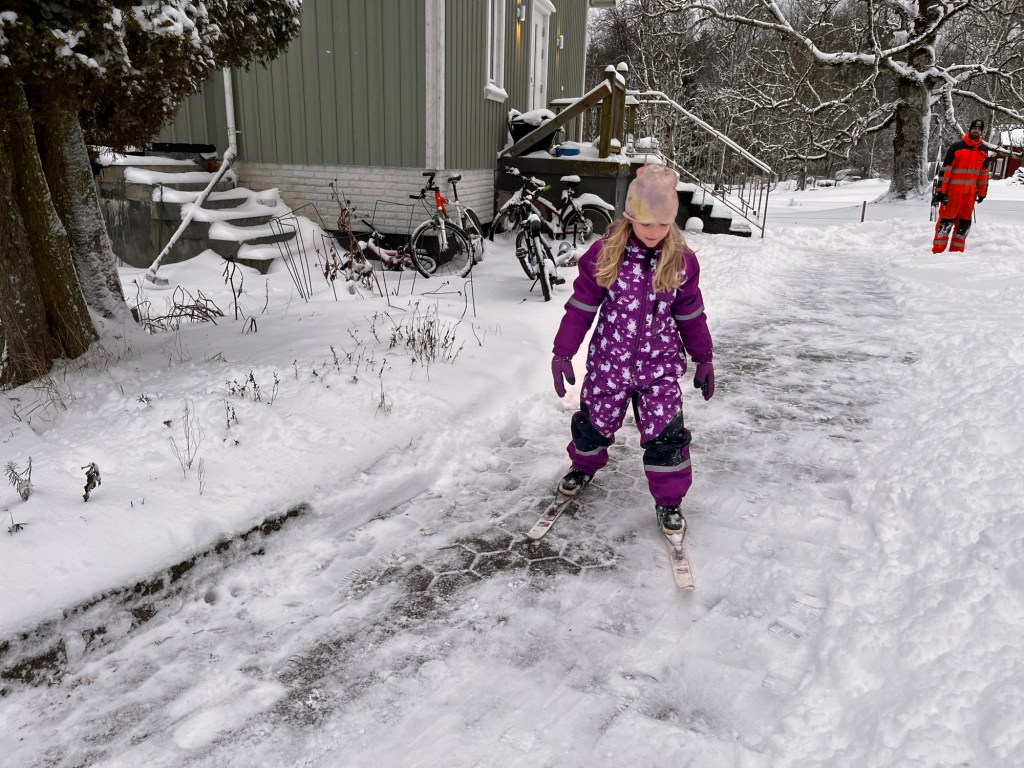 I söndags fick vi ut barnen lite också och de testade skidorna i trädgården. Loke lyckades ganska bra!