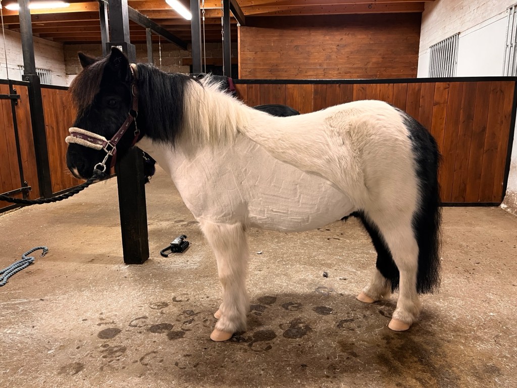 Både Kaprifol och Domino har fått lite extra uppmärksamhet den senaste veckan och igår var det Juniors tur. Han och Domino fick rasta av sig lite lösa på ridbanan och sen åkte klippmaskinen fram och Junior blev av med lite päls. Även Domino ska klippas framöver tänkte jag, men Junior blev först ut. Trots avsaknaden av motion de senaste två månaderna ser han ganska trevlig ut och vägen visar på minus 25 kg sen jag tog honom på foder i höstas.