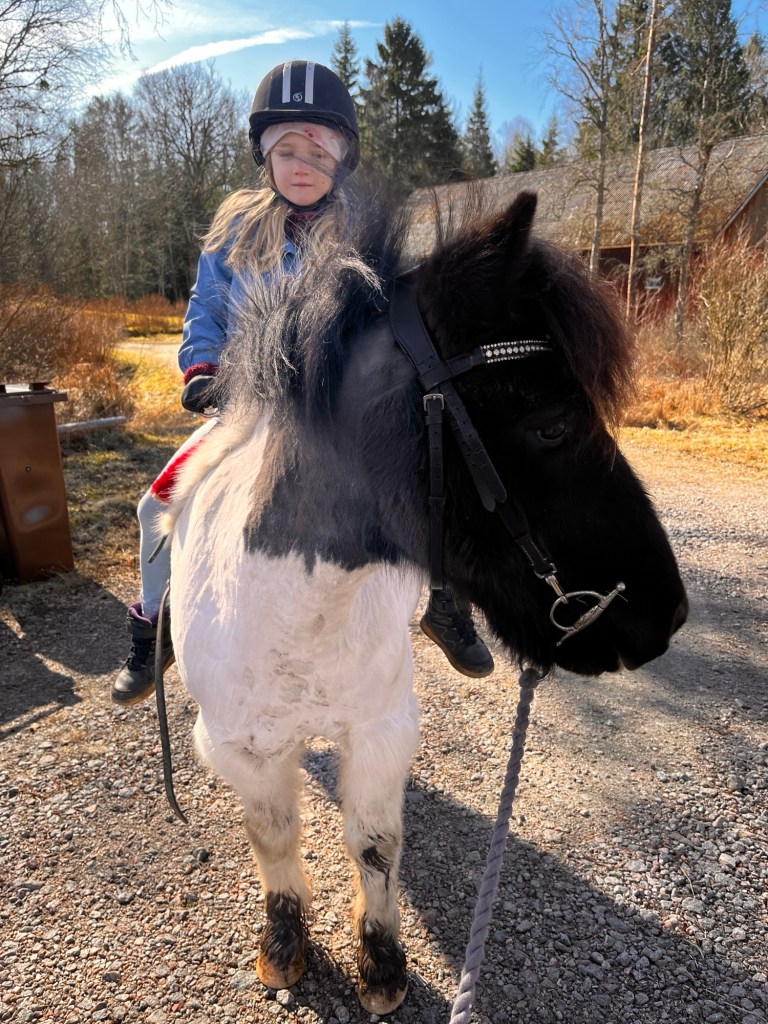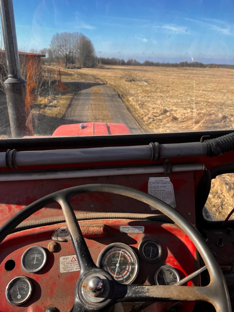 Mellan de båda hästarna körde vi Loke till en kompis, och när båda hästarna var klara cyklade jag och Nora bort till Oma och Farfar för lunch. Efter detta blev det lite mer trädgårdsfix och sen var det dags att köra traktor. Igen! Det har blivit mycket traktorkörning för mig den här veckan, en höbal till hästarna i måndags och i fredags fick fåren sin höbal. Då lyckades jag även koppla av balgripen för att harva ridbanan och idag harvade jag den en gång till medan höbalgripen ännu var av. Sen lyckades jag koppla på balgripen igen och köra veckans tredje höbal, till hästarna igen denna gången.