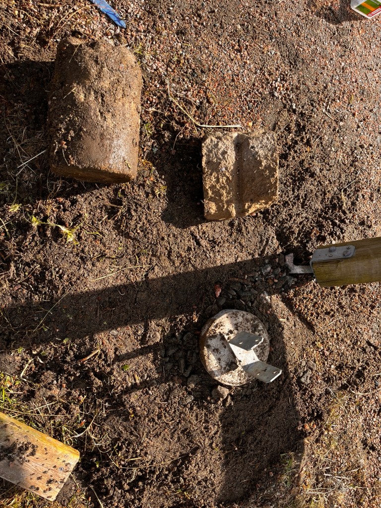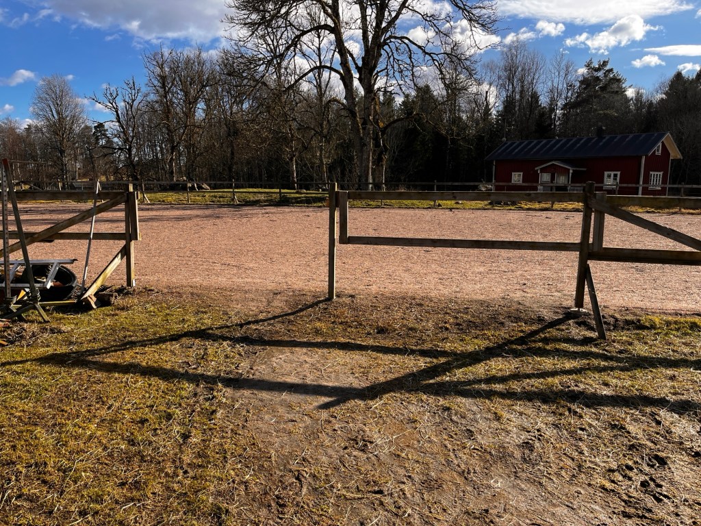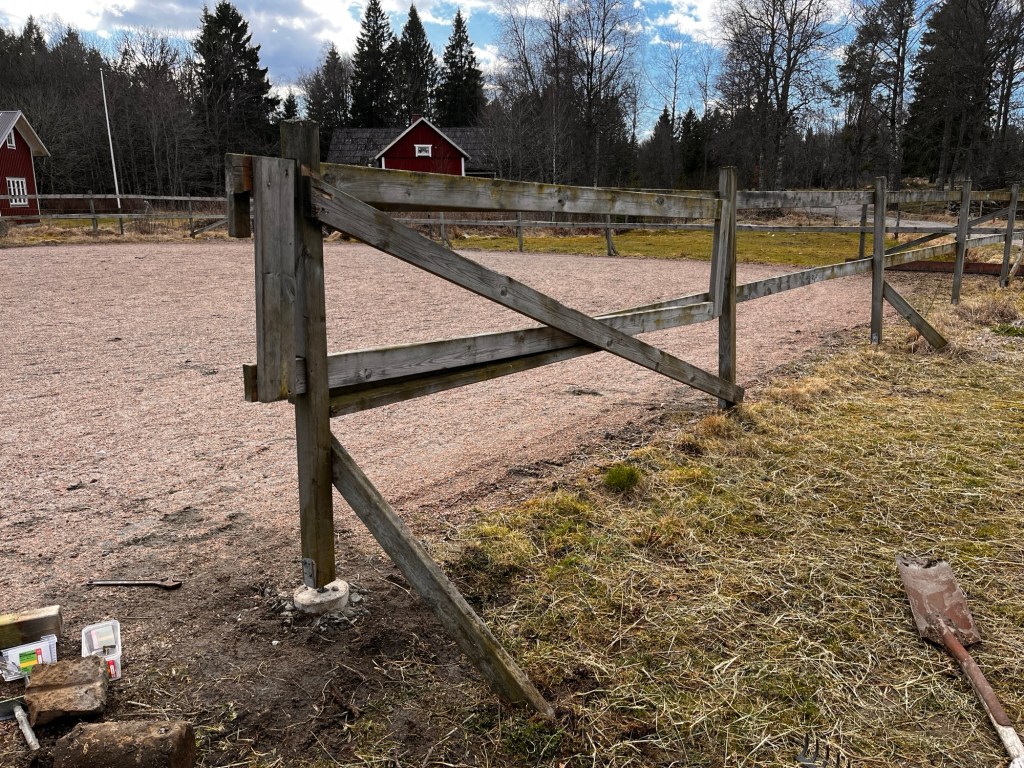 Axel och Ulf jobbade med träd hela förmiddagen, de tog hand om de träd som trillat över staketet in till hästarnas vinterhage, så staketet kunde stå upp ordentligt och så att hästarna kunde ta sig ut i den stora delen av vinterhagen. Sen åt Axel lite tidig lunch och sen tog han med sig Pussel och åkte till veckans jobb i Harnäst, så jag och barnen blev kvar hemma. Vi tog tag i ett annat projekt som stormen skapat, en bit staket till paddocken hade nämligen också blåst sönder. En slana var nerblåst och en av plintarna vid grindöppningen hade spräckts i två delar och den stolpen stod således inte så bra längre. Men lyckligtvis visste jag att vi hade en extra plint kvar sen vi byggde staketet för 8-9 år sedan (den som spar…) så jag letade upp den, skruvade loss lite staket, grävde upp den trasiga plinten och ersatte den med den nya! Inte illa va!