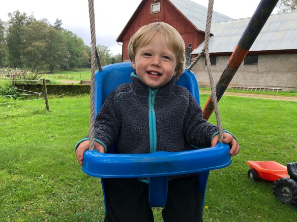 Jag minns inte riktigt hur vi gick vidare därifrån men så blev han väl ändå lite gladare på nåt vis och ville gunga, så det gjorde vi.