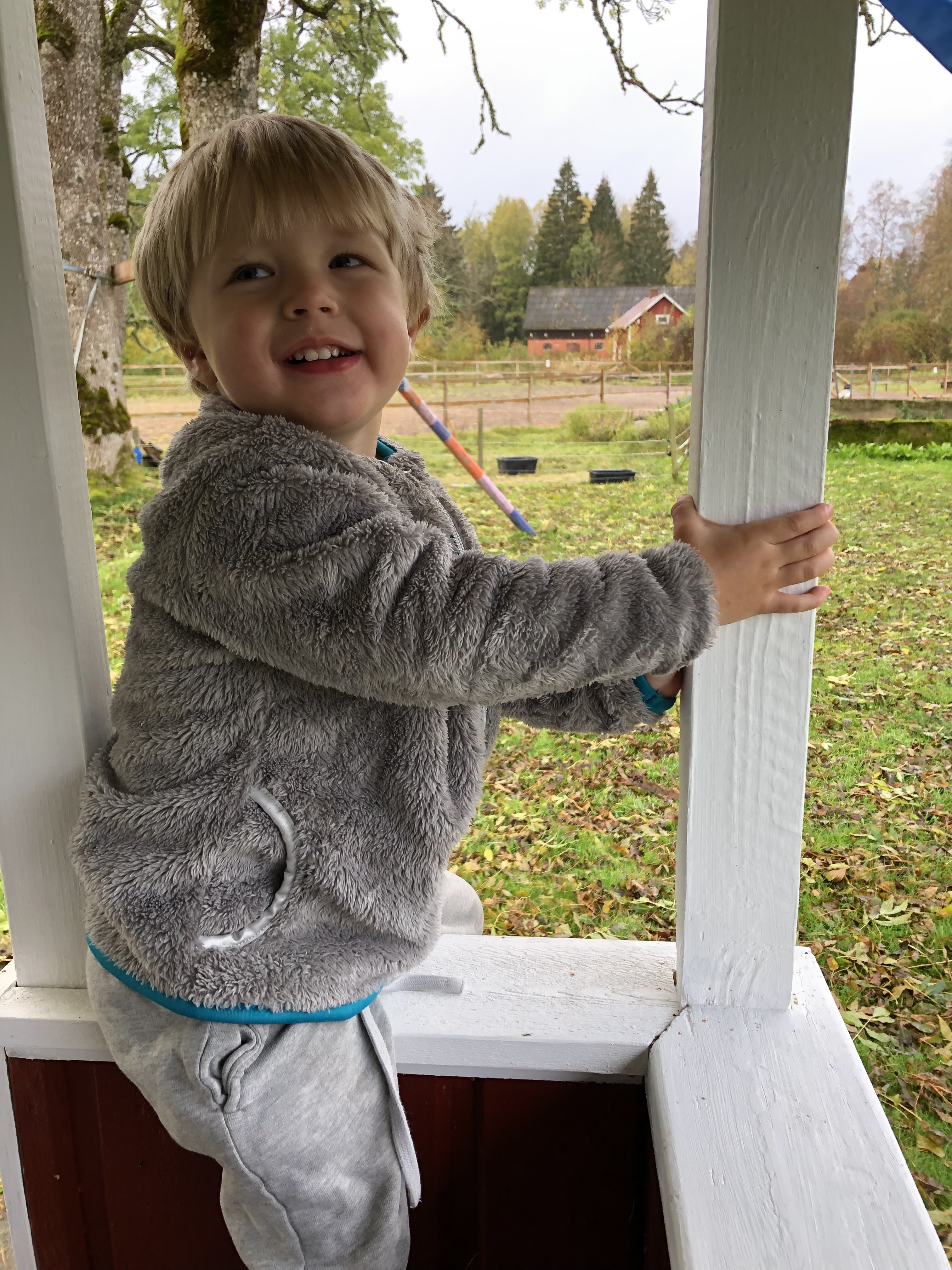 Och finns det något som är potentiellt klätterbart så klättrar man på det. Bord, stolar, badkar, fönster, lekstugor.