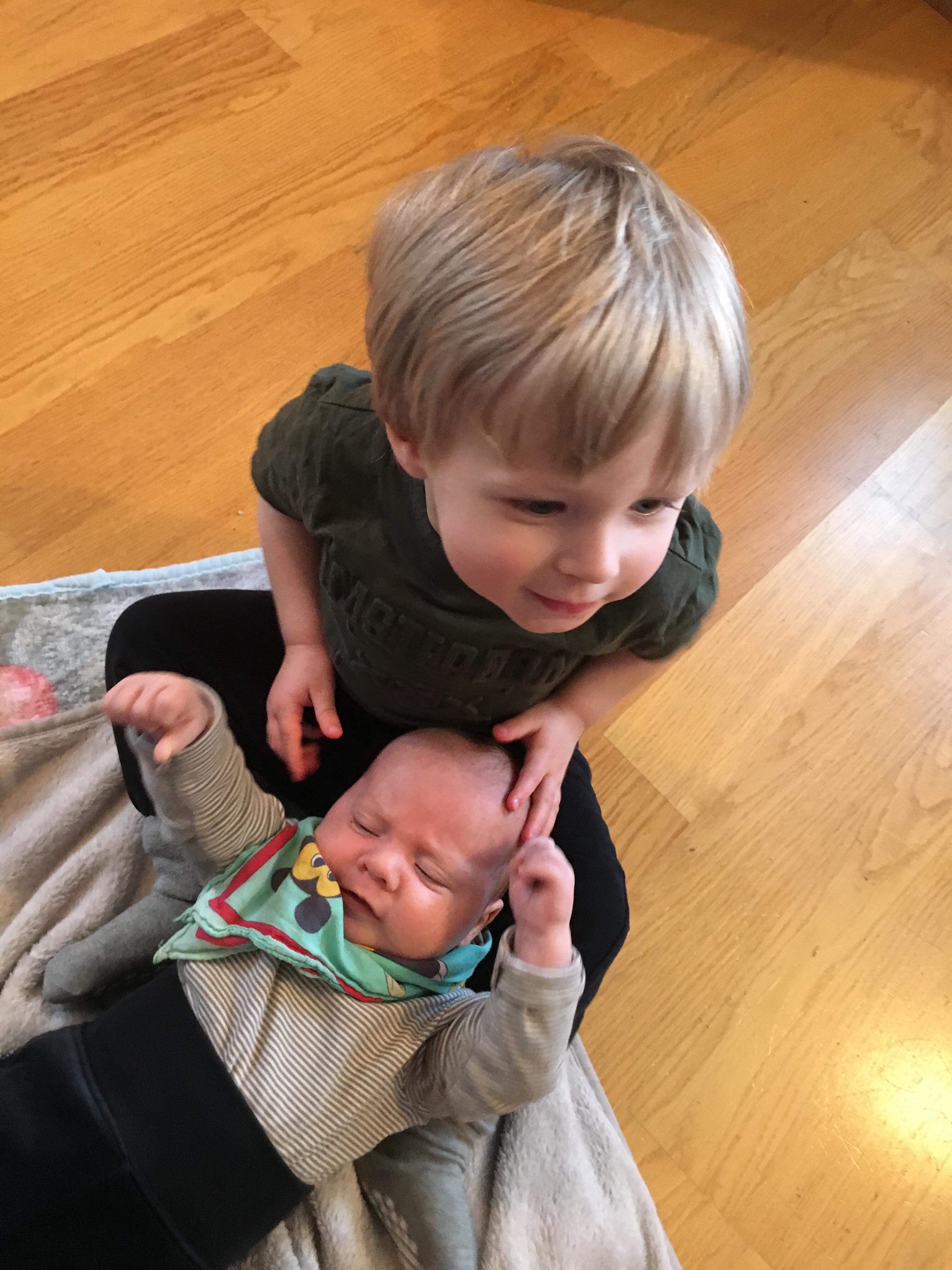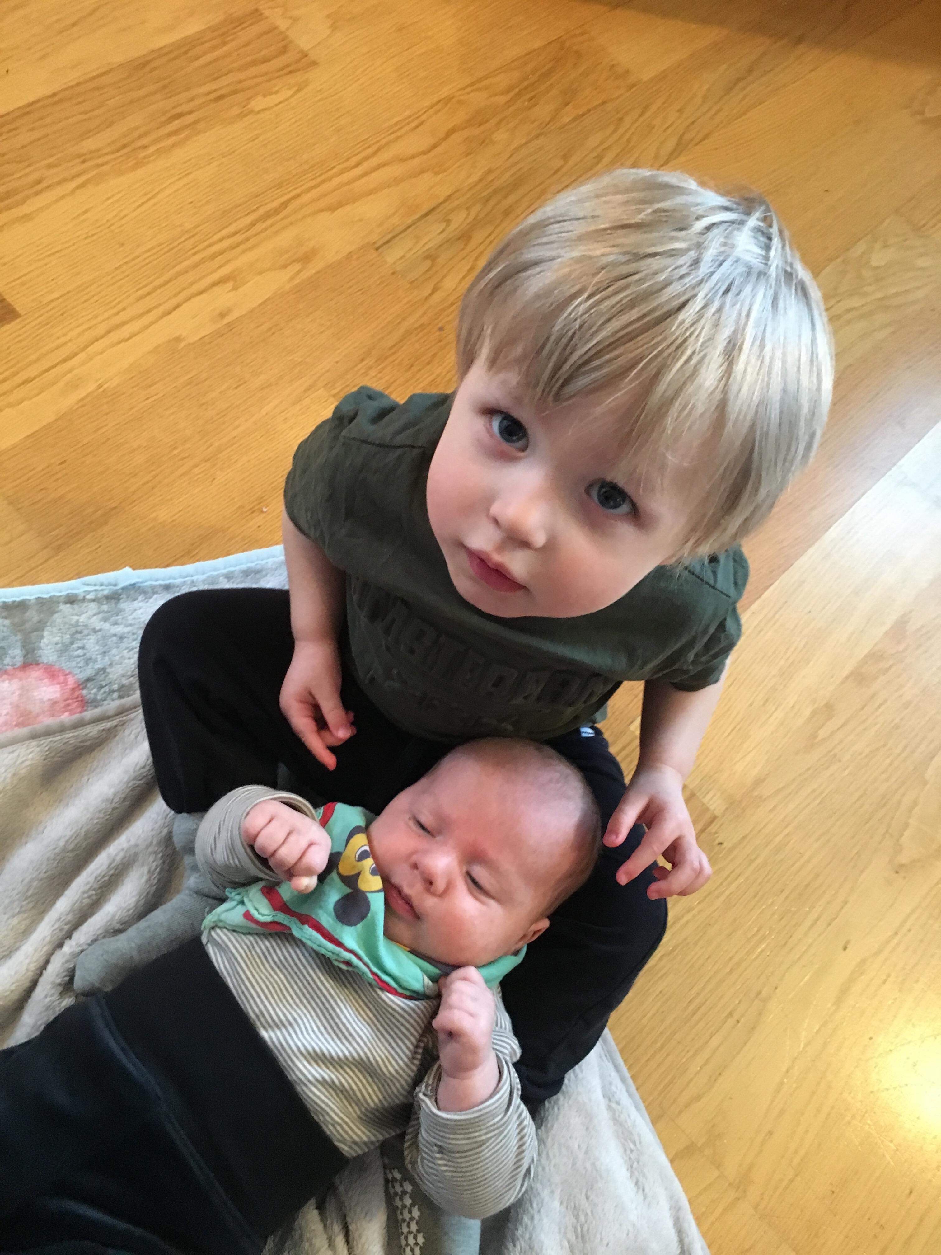 Sofia hade med sig sina barn också och Loke blev genast förtjust i William och han verkade gilla Loke också. De lekte lite tillsammans och Loke ville gärna sitta i knäet när vi fikade lite.