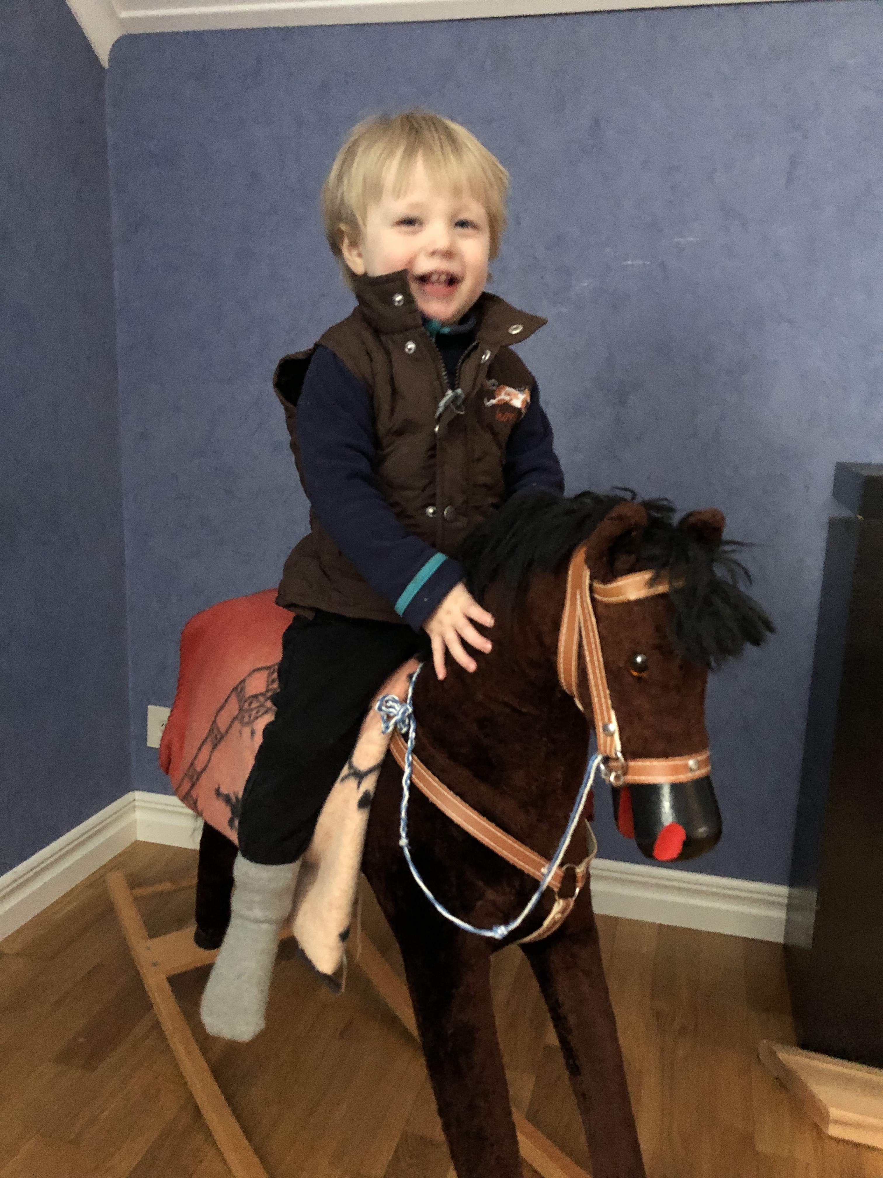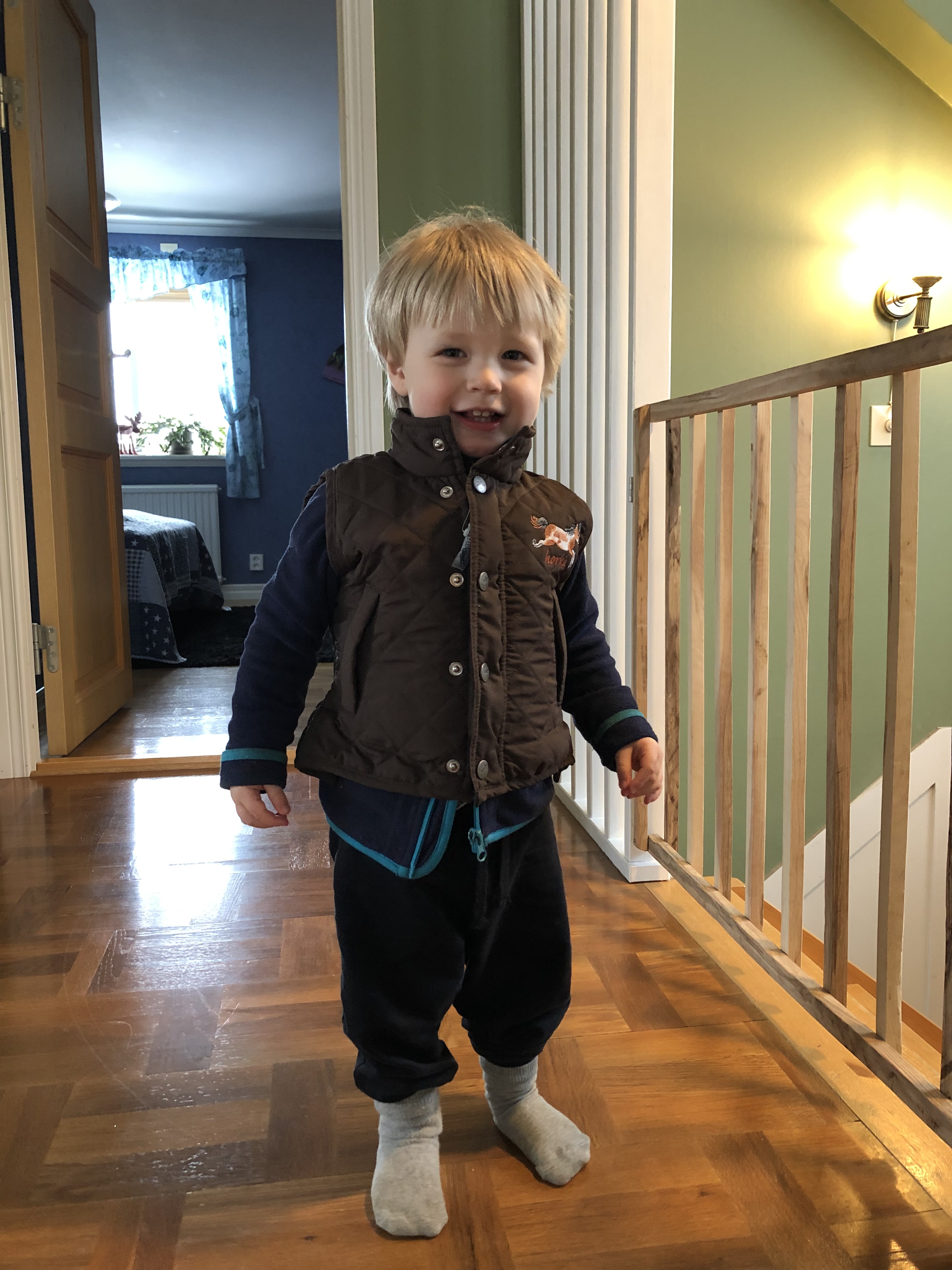 Igår var jag och Loke på äventyr! I alla fall på eftermiddagen. Förmiddagen började ganska som vanligt med matning av djur och lek ut. Sen lekte vi lite inne och kollade igenom lite kläder och hittade den här söta rid-västen!
