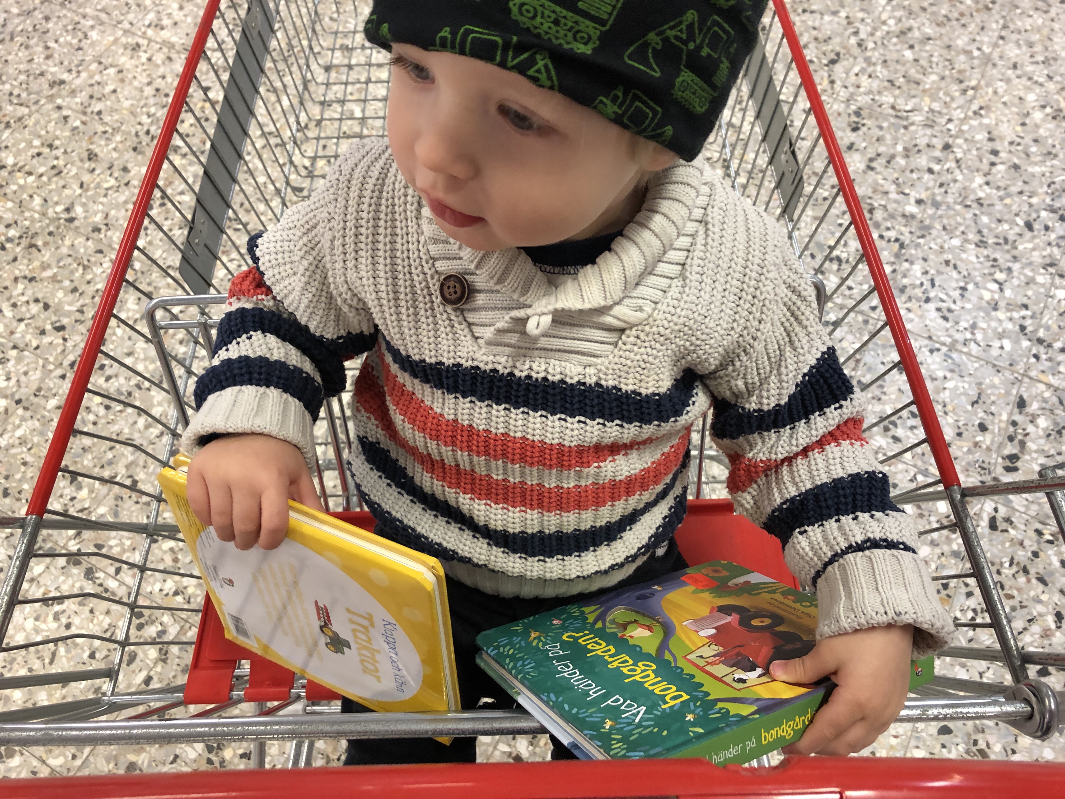 Sen började vårt äventyr! Först åkte vi till Ica i Alingsås och handlade. Och så var det ju lite bokrea där! Jag gick runt borden och kikade lite halvt och Loke utropade snart TRAKTOOOR! Och ja, hans mamma kunde ju inte låta bli att låta ungen välja hela två böcker. Det leendet man blir belönad med är otäckt farligt alltså.