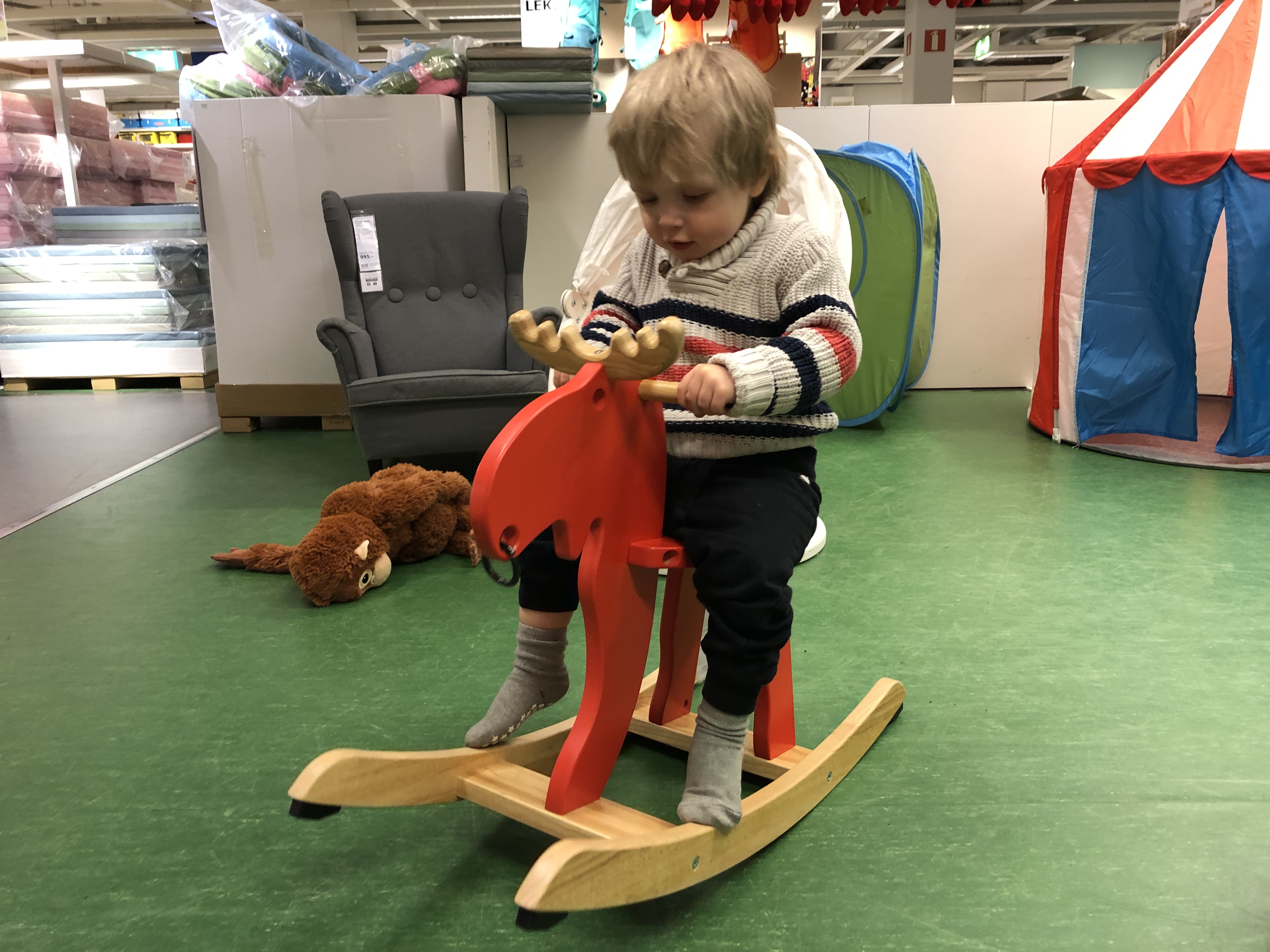 Nästa stop var lite oplanerat. Jag hade tagit ordentligt med höjd för tiden eftersom vi skulle handla och ta oss igenom Göteborg i eftermiddagstrafiken, men allt gick hur smidigt som helst så vi hade en timme till godo. Så vi stannade till på IKEA i Kållered, handlade inte en pinal men bytte blöja och lekte på barnavdelningen, hehe.