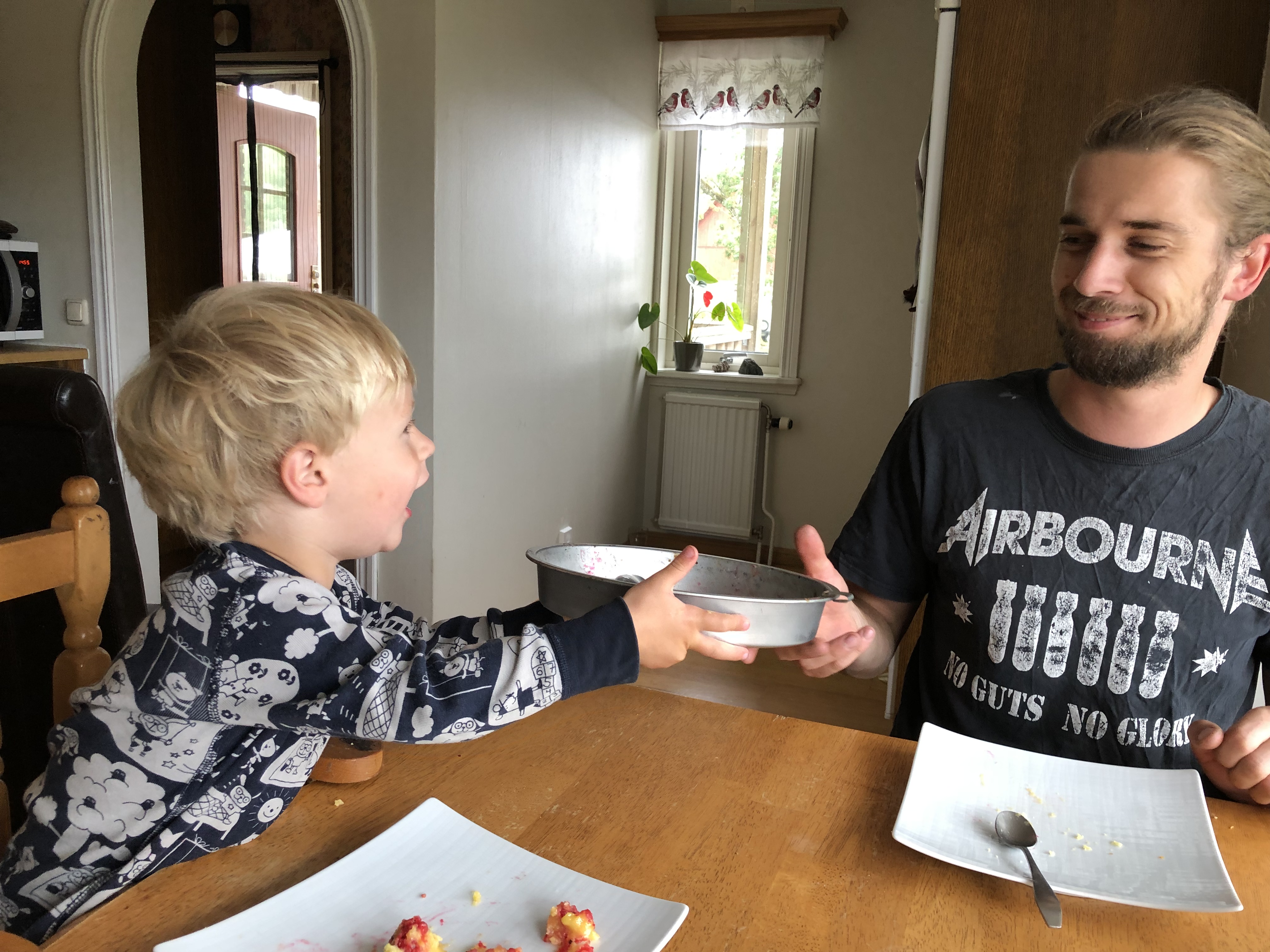 Vi hann med lite fika mellan varven också! Marleen var hos oss även igår och tog hand om Loke medan jag och Axel grejade. Äppelkaka är gott!