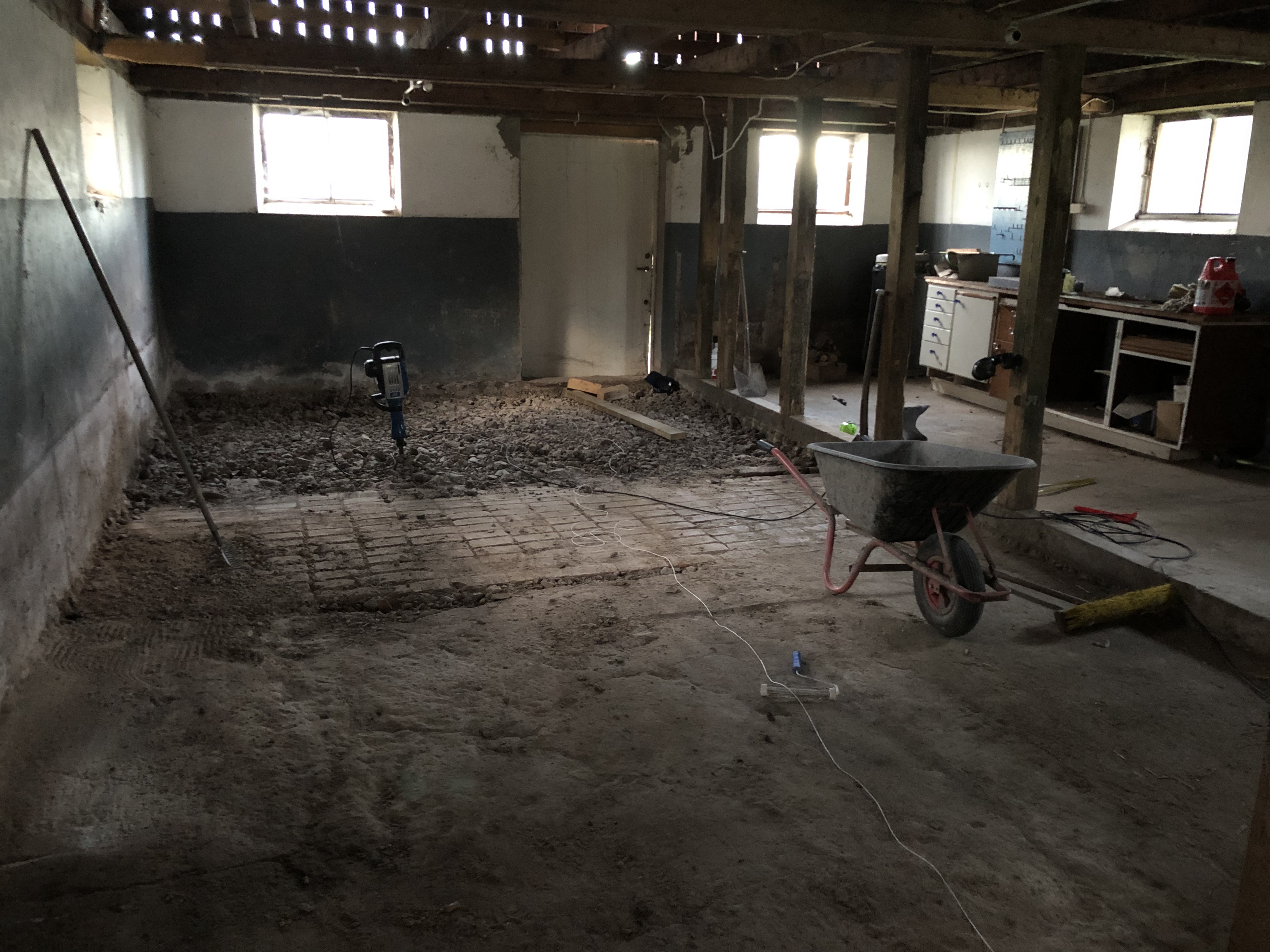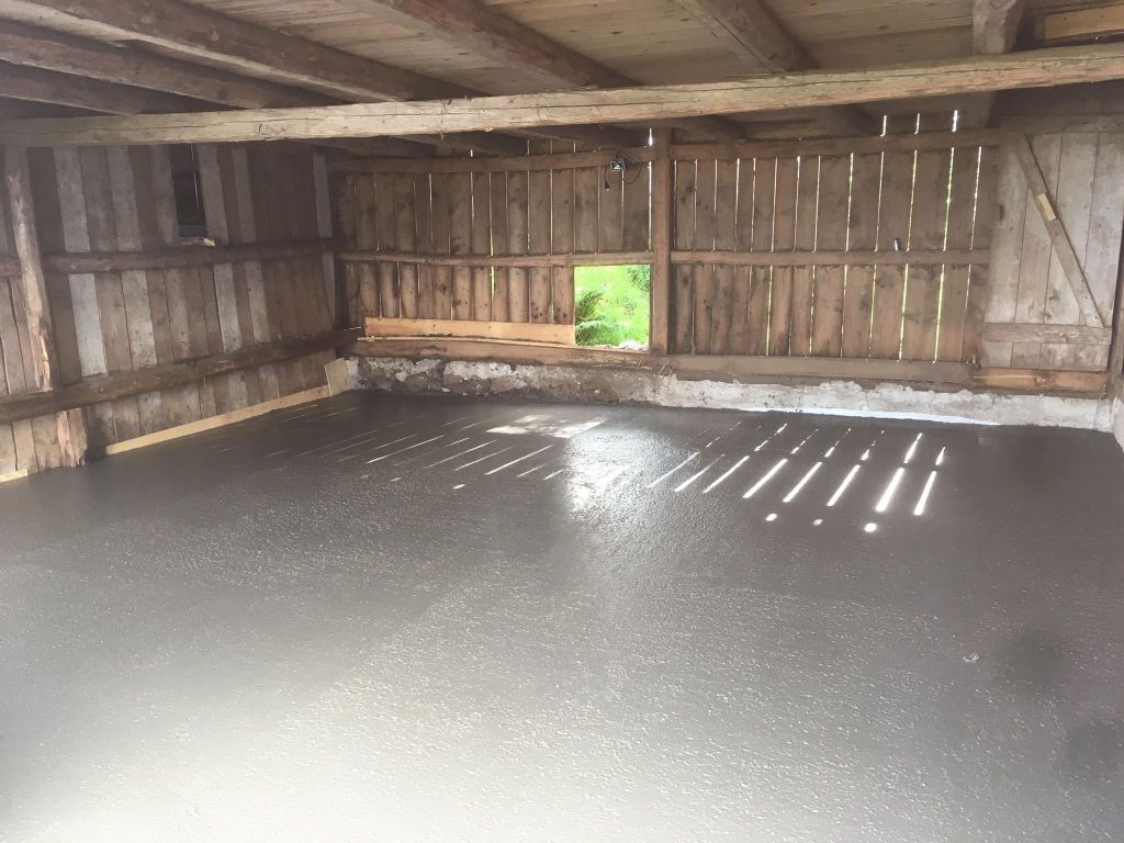 Vi satte även upp formplyfa nertill mot vedskjulet för att ännu lite till göra det enkelt att hålla rent, skydda bakomliggande vägg och så blir det ju snyggt också. Här är det även lite halm utspridet!