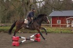 Och hej vad det gick! Vi fick några taskiga avstånd men Kaprifol hoppade snäll över och hoppade mig nästan ur sadeln ett par gånger, lite onödigt mycket luft över hindren ibland, men hon hoppade utan att tveka alltför mycket. Jag fick ett ganska bra flyt och det kändes bra!