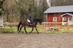 Så fort banan var memorerad fick hästen på sig sadel och jag värmde upp. Tävlingen gick snabbt så jag hann inte rida fram riktigt så länge som jag kanske tänkt, men jag hoppade lilla hindret, räcket och oxern var sin gång och Kaprifol kändes jättefin. Pigg, aningens tittig mot omgivningen men hoppade bra.