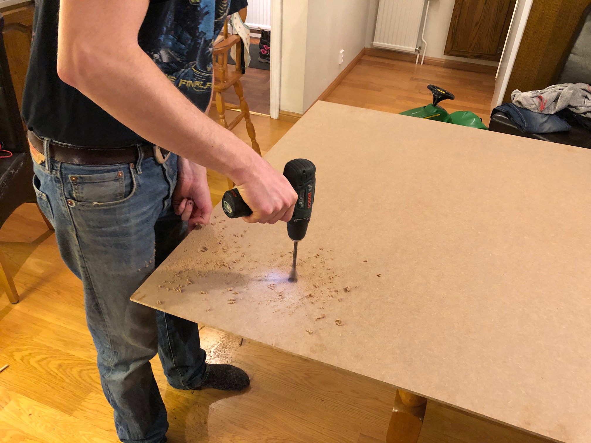Vi har ju många kontakter och lampknappar i vårt hus så det blir en del borrande och sågande i skivorna.