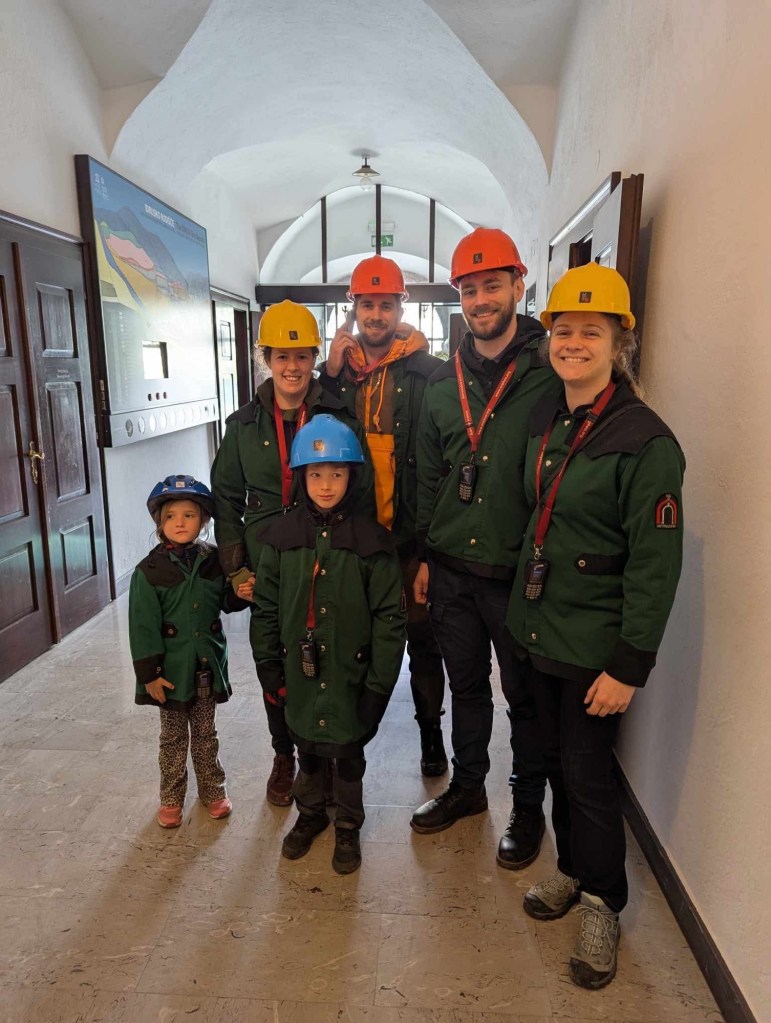 Idrija innehar världens näst största kvicksilvergruva, fyndigheten upptäcktes i slutet av 1400-talet. Vi kom tid klockan 10, lagom till den guidade turen som startade då. Först fick vi se en liten film om gruvan och därefter blev vi kittade med hjälm, rock och en ”telefon” som spelade upp olika informations-kapitel till oss under vandringen genom gruvan.