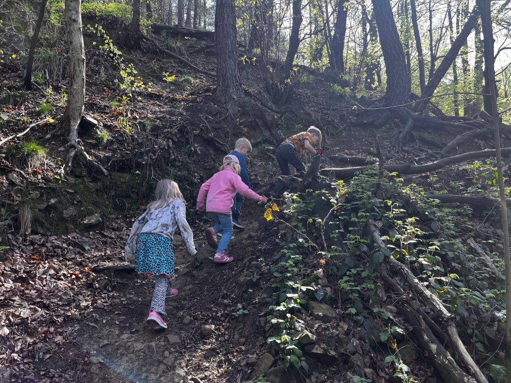 Vi fick även se kvicksilver, dels som små små skinande rena pärlor direkt i bergväggen nere i gruvan och efter gruv-vandringen avslutade vi i ett rum där det fanns en stor röd cinnober-rik sten. Vi fick också känna på viktskillnaden mellan en burk med ca 50ml vatten och lika mycket kvicksilver vilken ju var otroligt stor. Det tyckte barnen var häftigt också!
