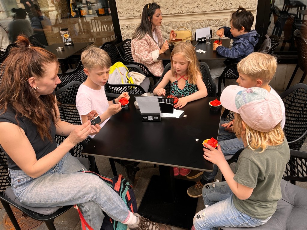 Våra telefoner spelade upp informationsavsnitt på olika språk (svenska fanns inte så barnen fick holländska) vid de olika stationerna och guiden svarade på frågor och berättade lite extra.