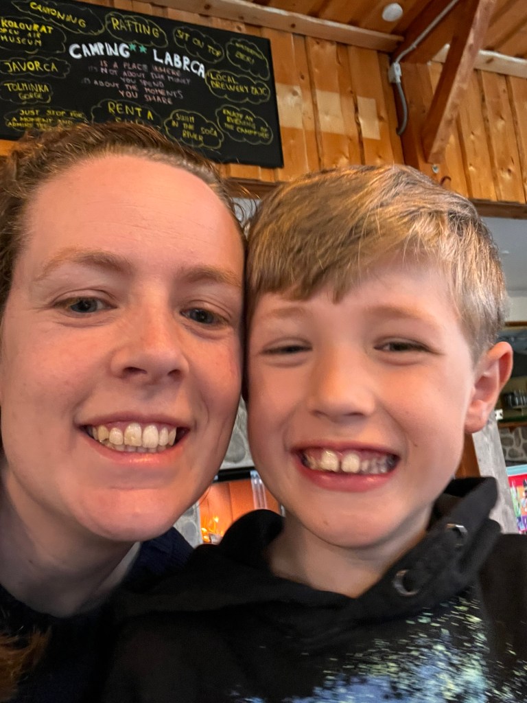 Så kom vår sista dag i Slovenien. Vårt flyg gick dock inte förrän på kvällen så vi hann med en aktivitet under dagen. Även Britt och Simon skulle med samma flyg som oss, men övriga skulle stanna till måndag (och Oma och Farfar hade ju husbilen). Vi packade därför den ena minibussen med alla våra grejer och sa hej då till resten av gruppen och körde den knappa halvtimmen till Idrija och stadens kvicksilvergruva.