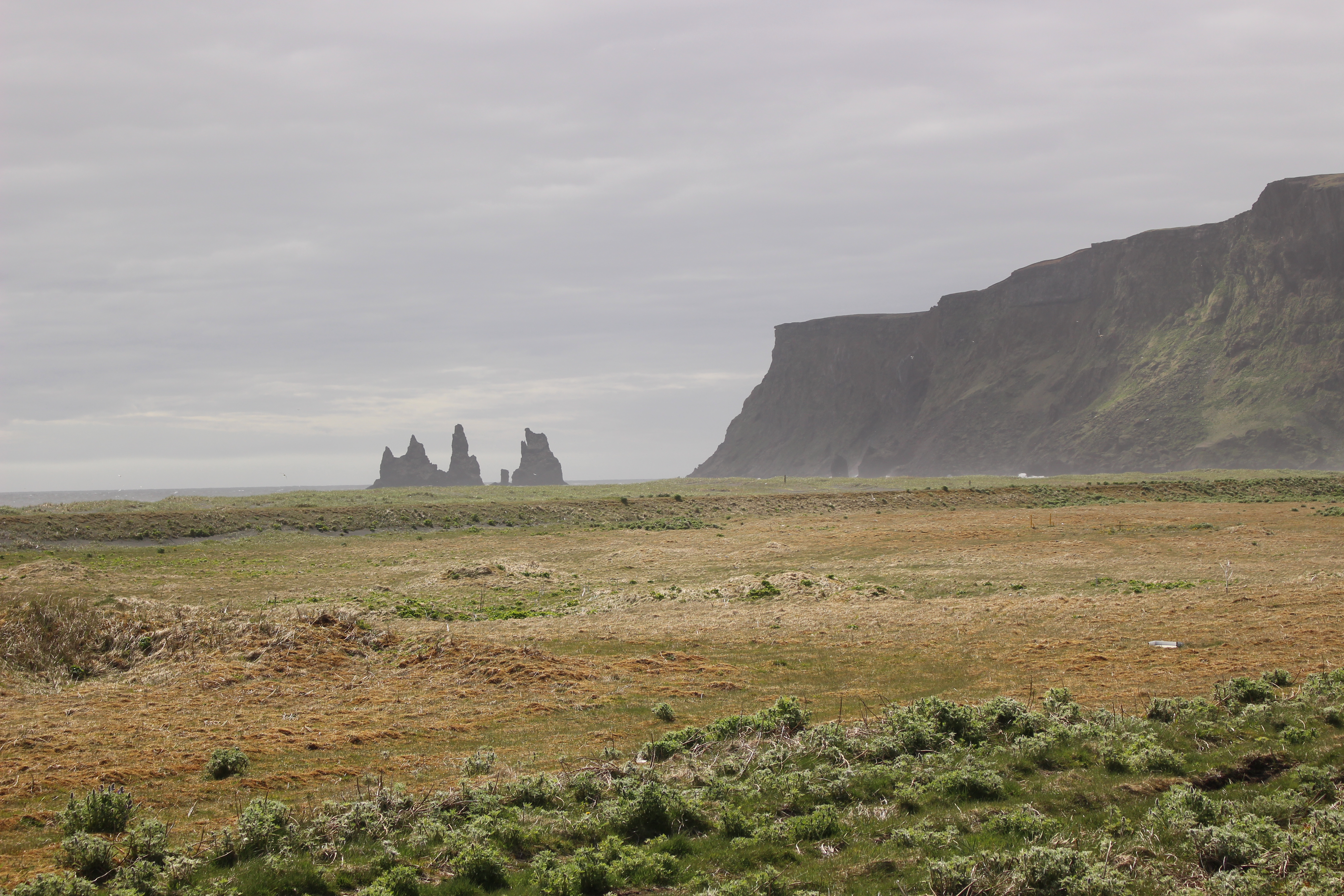 I måndags vaknade vi upp till en ordentlig vind som ven runt våra stugor och när vi gick ut fick vi hålla hårt i dörrarna på både stugan och bilen. Vår ursprungliga plan var att ta oss upp till Landmannalaugar den här dagen, men på grund av en kall och sen vår är den vägen fortfarande avstängd så vi fick ändra våra planer. Vi satte därför i stället kurs mot Njáls Saga Center (ett slags vikingamuseem med fokus på en av de mest kända isländska sagorna). På vägen dit upptäckte vi dock att vår ena bil hade problem med bromsarna; bromsservon fungerade inte utan man fick “bromsa manuellt” vilket ju inte riktigt är så bra i längden. Så efter besöket på Saga Center och ett samtal till biluthyraren fick vi åka till en verkstad i Vík, 8 mil sydöst längst kusten. Inte så dumt ändå, för dit hade vi ändå planerat att åka. Vägen bjöd på fantastisk utsikt och efter en väntan på knappt två timmar var bilen färdig att åka igen. VI hann dock med att äta lunch och göra lite sightseeing, så det var ju inte så att vi satt sysslolösa precis!